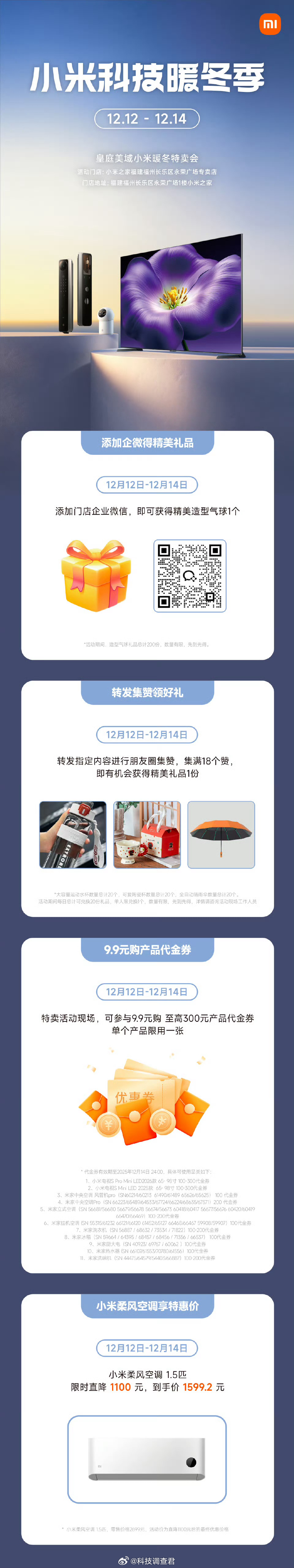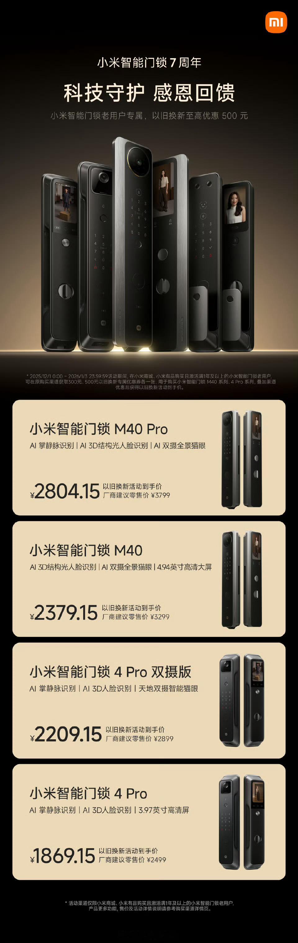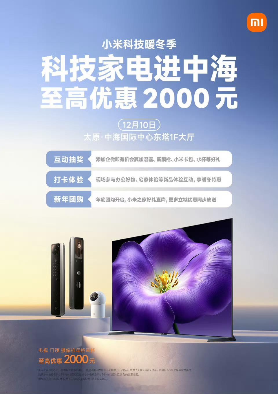 冬天一到,谁不想窝在家里享受温暖和安心呢?为了让大家松弛宅家,快乐猫冬。从12月1日到明年1月3日,小米带来了一整套智能又实惠的宅家方案~追剧神器有小米S Pro Mini电视,75、85、98英寸超大屏可选,画质和沉浸感直接拉满,冬天窝在沙发里看大片太爽了。小米智能门锁M40 Pro可以当门口保安,关门自动上锁,多种开锁方式,冬天不用掏钥匙,安全感十足。小米智能摄像机4更是咱们的全能看护,变焦版能看清细节,室外双摄版能看双视角,家里各个角落都能安心照看。更妙的是,它们能“组团”工作:用电视追剧时,门口有人按铃,访客画面会直接弹到电视上,不用起身就能看到是谁。打开电视,还能把摄像机的画面投屏上去,一边看电影,一边留意其他房间的情况(比如宝宝或宠物)。出门时,门锁联动摄像机自动开启巡航,随时用手机查看家里。回家开门,摄像机会自动静默,保护你的隐私。现在买就特别划算,小米电视至高立减2000元,智能门锁最高省近500元,智能摄像机也有最高120元优惠。这样看来,正是咱们升级智能装备的好时机~小米科技暖冬季小米电视小米智能门锁小米智能摄像机