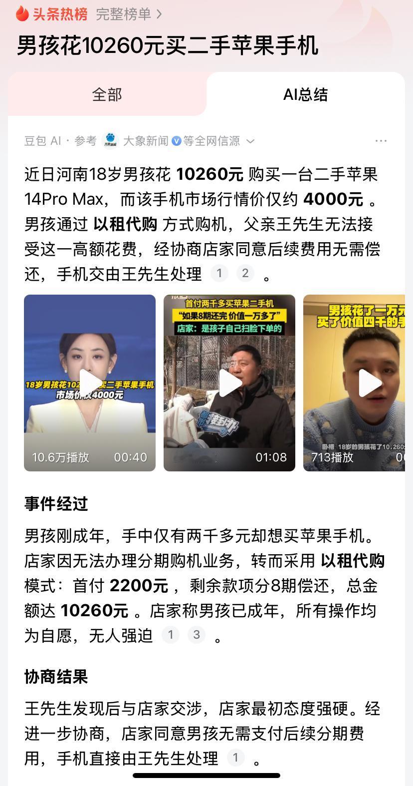 18岁男孩花10260万买苹果14二手手机 这这…… 相关部门该管管了! 不管是哪个部门监管都应该给大众一个胶带! 君子爱财 取之有道,这同时也给个别黑心商家提个醒!莫伸手,伸手必被抓!
