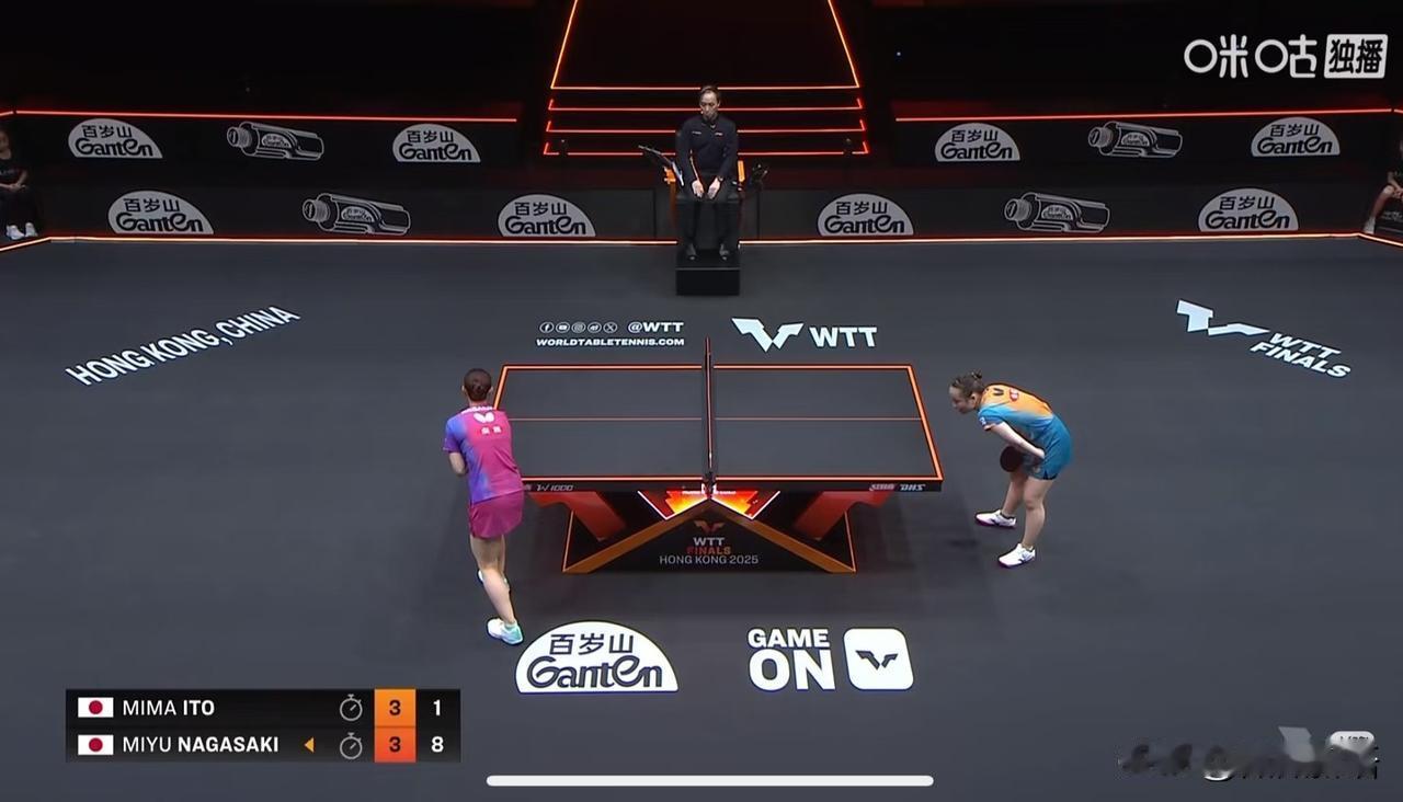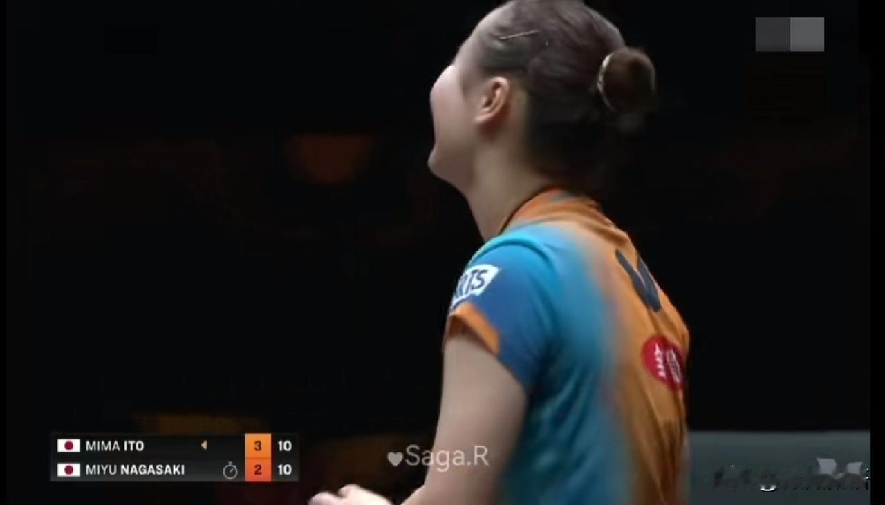 长崎美柚这分追的,伊藤也笑了。 伊藤美诚大比分3-2,第六局10:7先拿到赛点后