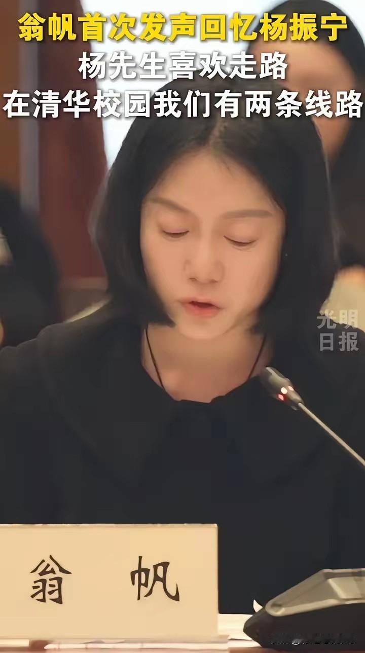 原来翁帆爱得这么深沉,10号翁帆追忆杨振宁的时候,她一直以杨先生称呼他。 翁帆说,21年前她第一次在清华园看到了雪,她是南方人,那是她第一次看见雪。 他们在清华园散步,聊杨振宁儿时的趣事,有一种相见恨晚的感觉。 他们是忘年恋,大家都无法理解这种感觉,也许你们看到的是杨振宁暮年形象,翁帆看到的却是她崇拜的偶像,是爱人也是老师,是一本翻不完的书籍。 爱人如养花,翁帆已经五十多岁,但她的长相还很年轻,没有一点妇女感,而是不染尘埃的少女感。