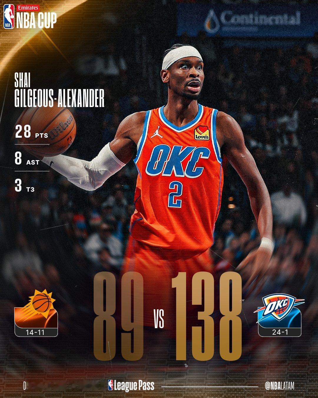 太残暴了!!雷霆138-89大胜太阳!!比赛第二节就失去悬念了,半场雷霆领先26分,最多的时候一度领先53分…本场过后,雷霆战绩24胜1负,追平16勇士的NBA历史最佳开局,这赛季的雷霆真的太恐怖了!太阳vs雷霆雷霆大胜太阳49分雷霆太阳冲突