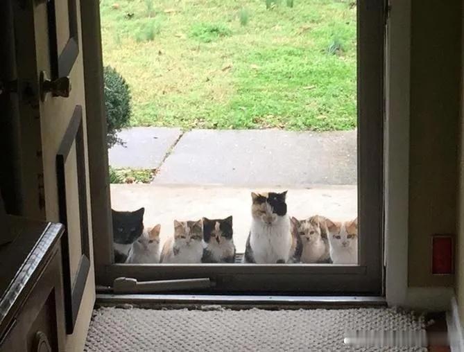 一网友说父母偶尔喂了一次流浪猫,结果早上起来一看,家门口就是这幅场景。。。