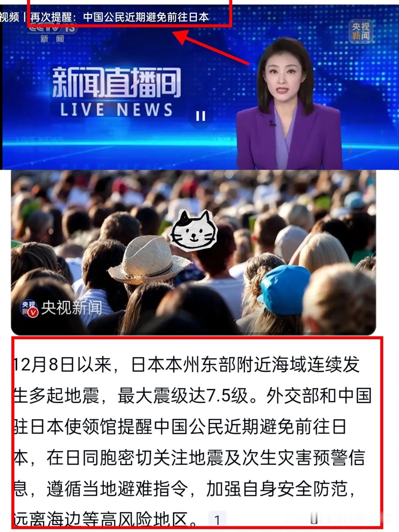 人类太渺小了 这时候听劝才是最保命的 这几天看新闻真是看得心惊肉跳 隔壁日本的地壳又彻底不安分了。 从12月8号开始,本州东部海域就不停地晃,最高直接震到了7.5级!这数字摆在这儿都渗人,这可不是闹着玩的,稍微有点常识的都知道这个震级加上次生灾害意味着什么。 咱外交部和驻日使领馆这回反应那是相当迅速,直接发了狠话:近期东方大国公民尽量别往日本跑! 我觉得这时候大家就真别“头铁”了,那些还惦记着趁乱去旅游打卡、觉得机票便宜想捡漏的,真得摸着良心掂量掂量。 命可是自己的,海边这种高风险区千万别去凑热闹,真出事了谁也替不了你。 在当地的同胞们赶紧听指挥避难,时刻盯着预警信息,千万别大意。毕竟在天灾面前,人类太渺小了,这时候听劝才是最保命的。 是啊,活着就是最大的幸运了!大家觉得是不是? 日本海地震风险 日本强震警报 日本地震带 日本火山型地震