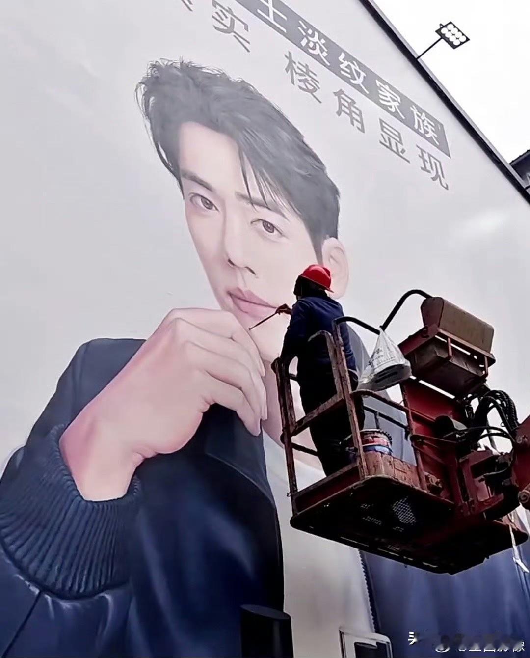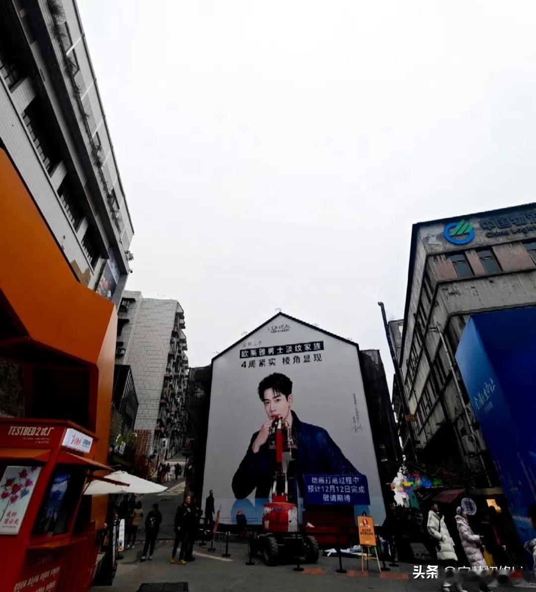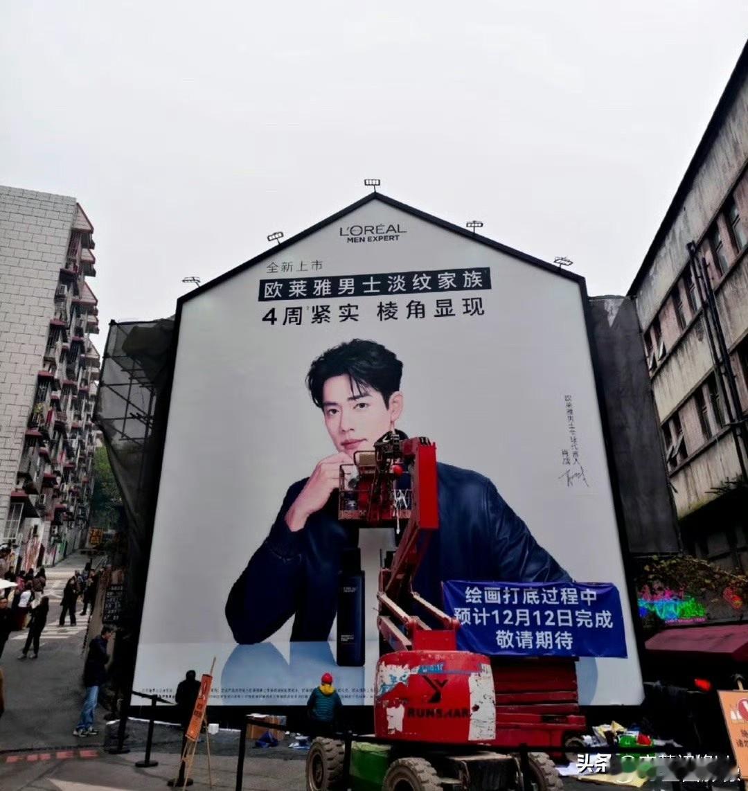 肖战欧莱雅男士护肤品手绘巨幅广告,在重庆即将完工,小伙伴可以去打卡了,肖战地广打卡可是都市时尚呢