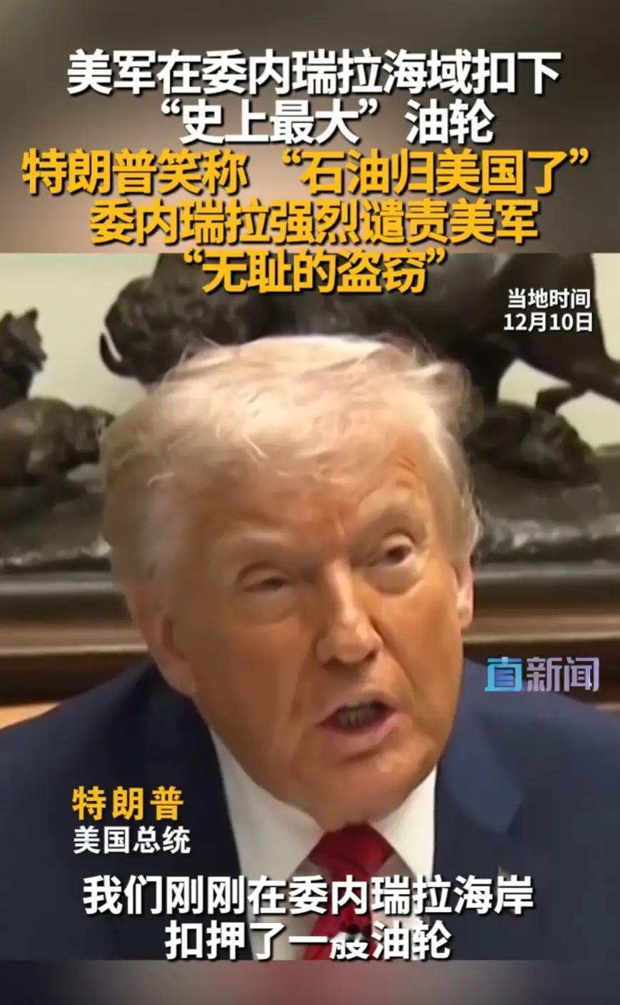 根据你提供的信息,事件发生在12月10日,美军在委内瑞拉附近海域扣押了一艘载重高达30万吨的超大型油轮。这被认为是美国历史上扣押的最大油轮。特朗普在被问及油轮上的石油如何处理时,笑着表示“我想我们会留着”,暗示美国可能会将这批石油作为资产或采取其他措施。 委内瑞拉方面对此表示强烈谴责,称美军的行为是“无耻的盗窃”。这一事件引发了国际关注,涉及到油轮所有权、国际海域的法律争议以及美国与委内瑞拉之间的紧张关系。 如果你需要更详细的分析或最新的动态,建议关注相关的国际新闻报道和官方声明。