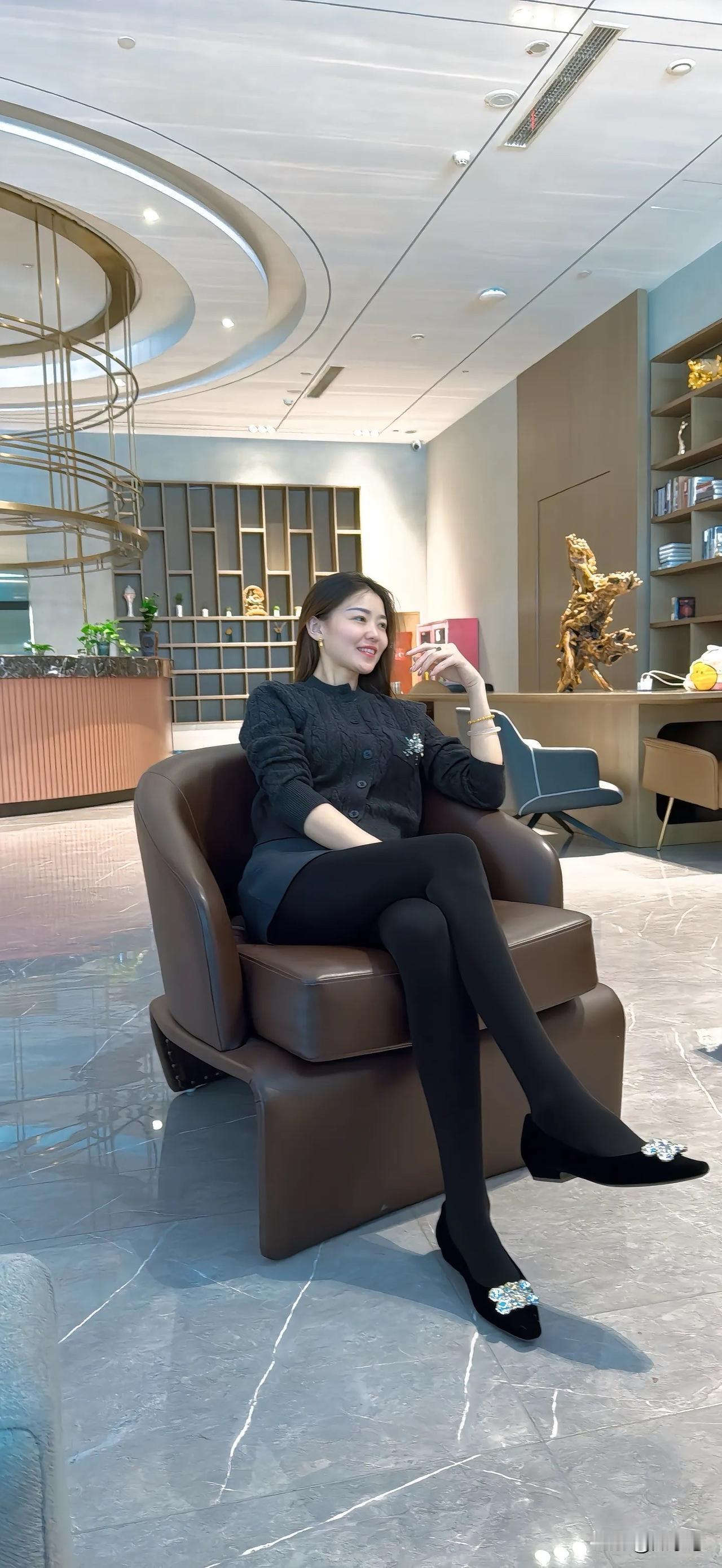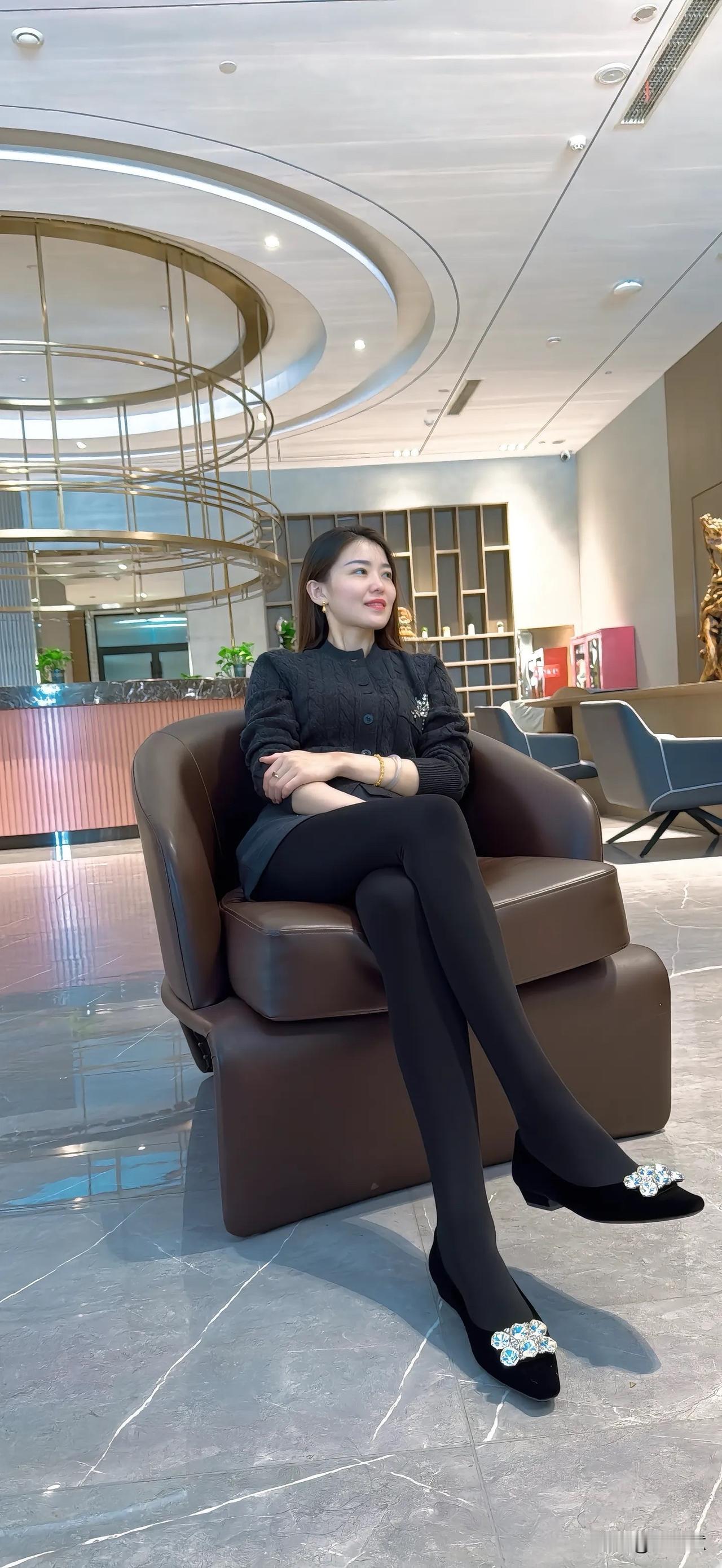 优雅黑衣女子,静坐现代客厅,品味生活之美。