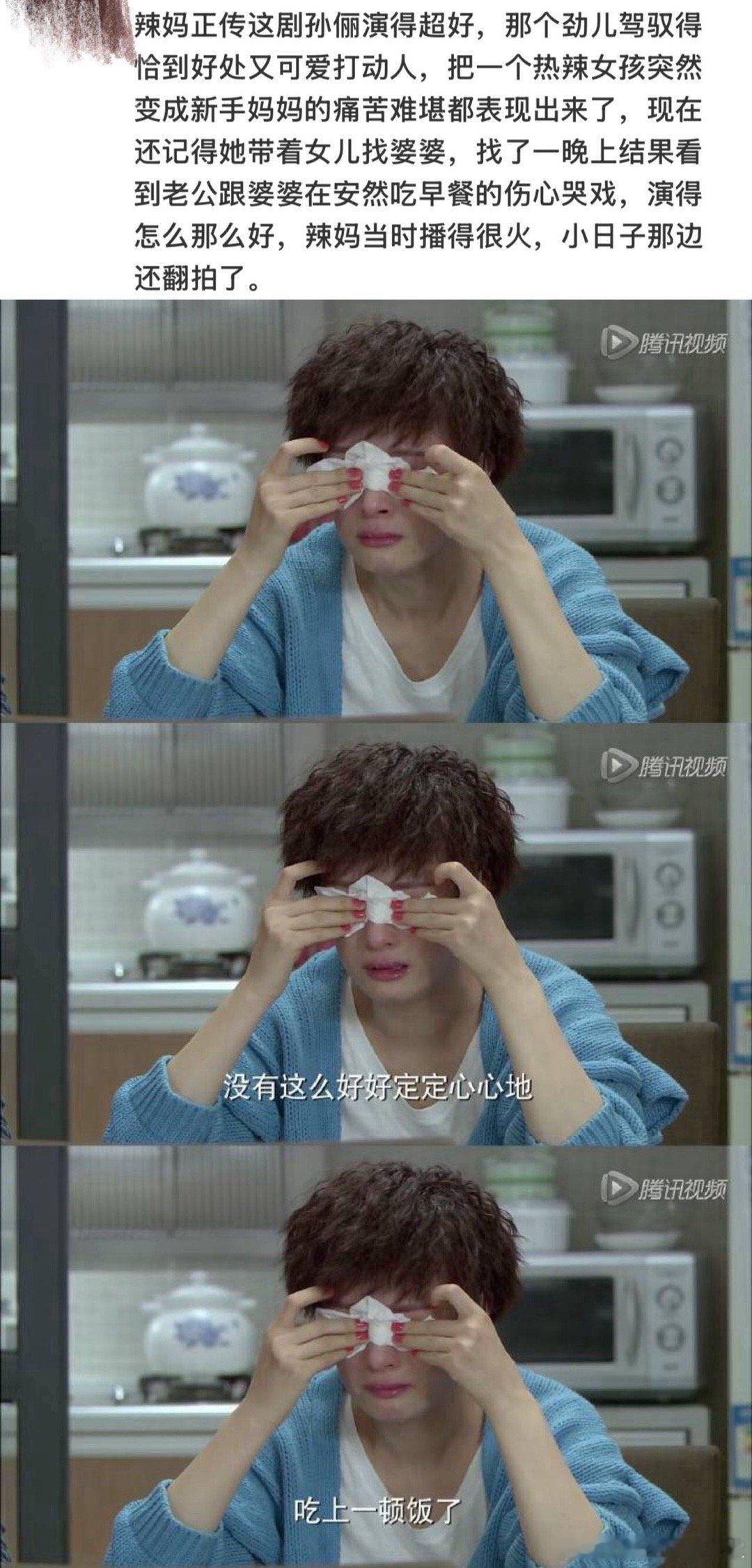 有一说一,很写实。印象最深的就是,男主他妈妈走丢了,女主带着孩子找了一夜,男主却带着妈妈在吃饭,这样过分的事还有很多……有段时间这种都市婚恋剧真的很敢写很反映现实,把人性展现出来了。现在的影视剧都偏偶像剧,男女主伟光正,在爱情上无瑕疵,看的都觉得虚幻孙俪这部《辣妈正传》算是把男性婚前婚后的变化说尽了,没结婚的多看看,电视不是瞎演的,它是来源于生活的。我喜欢它表达的思想,撕开的遮羞布,《辣妈正传》不仅仅是一部下饭剧,其实我更愿意说它或许真真正正站在女性角度思考了人生,除了大结局复婚之外,这部剧真的值得一看,孙俪演的特别好。孙俪还是太超前了