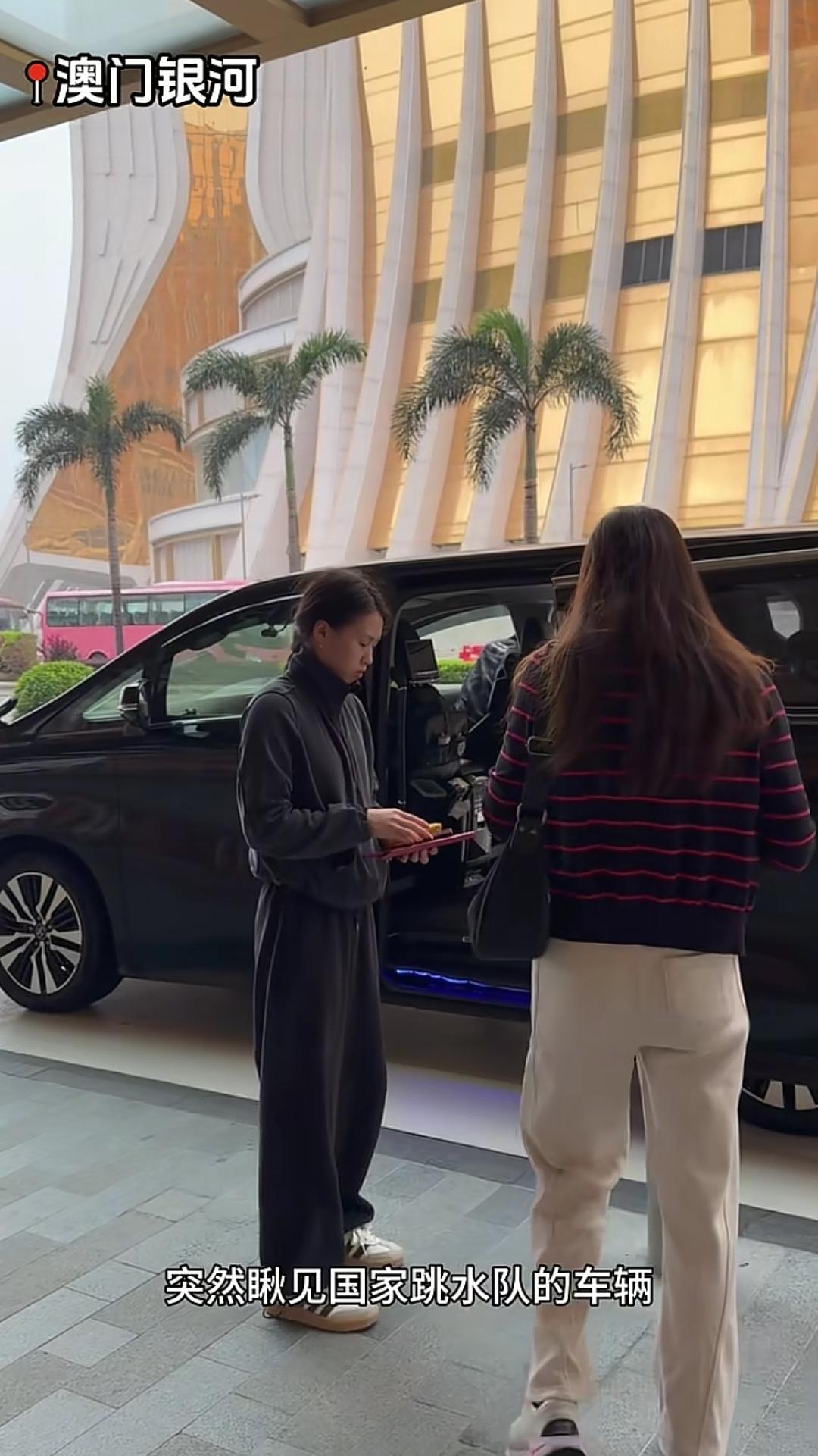 12月11日,国家跳水队运动员去澳门参加活动了,陈芋汐、陈艺文都去了,这次也看到了全红婵的教练陈若琳,还有吴敏霞。 吴敏霞戴着白色帽子,穿着白色卫衣,带着女儿一起来,陈芋汐正好在活动地点门口,吴敏霞的女儿见到陈芋汐,热情打招呼。 在合影环节,陈若琳站在后排中间位置,和陈芋汐在一起,吴敏霞在后排最边位置,遗憾的是没看到全红婵的身影。