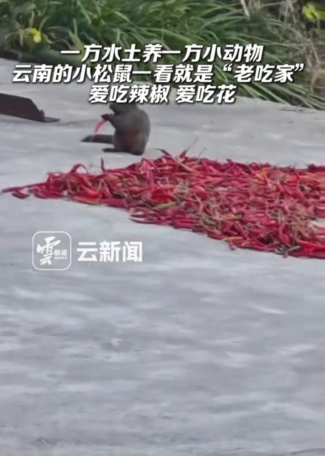 一方水土养一方小动物!云南的松鼠吃的是什么?吃花、吃辣椒。 特别是这个吃辣椒的,直接绷不住了,它们都不怕辣啊? 还有吃花的,这画面看起来很唯美,很和谐,忍不住勾起嘴唇。 喜欢这样的画面。