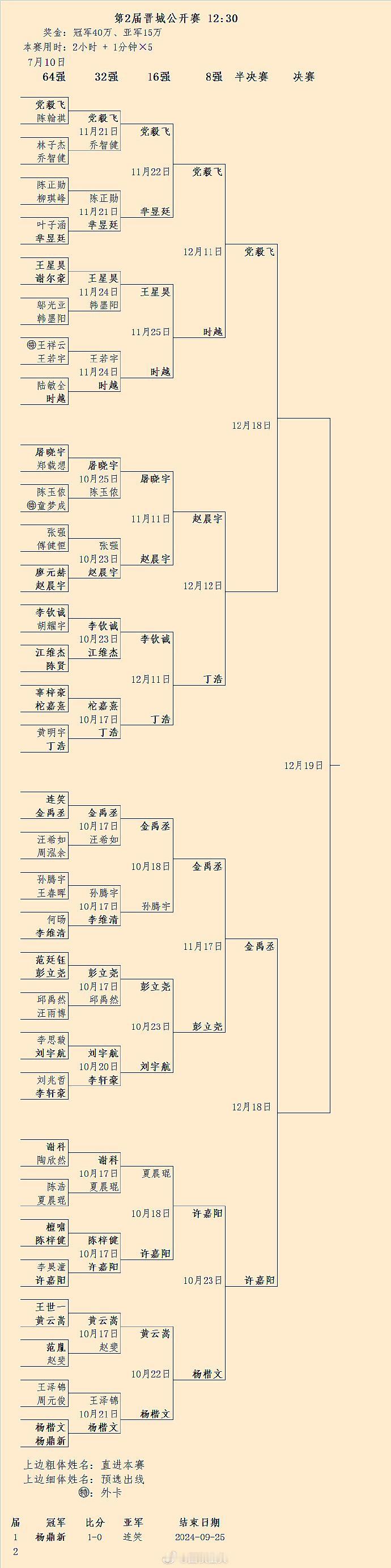 第2届晋城赛后续赛程