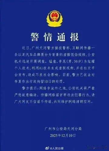 关于“男子AI生成车展低俗视频造谣被拘”的事件,反映出当前AI技术在带来便利的同时,也带来了新的社会治理挑战。以下是事件的主要内容和背景分析: 事件概述: 近日,一名男子利用人工智能(AI)工具伪造了一段以某汽车品牌展台为背景的虚假低俗视频,并在多个互联网平台上传播。这种行为不仅制造了虚假信息,还严重污染了网络空间,扰乱了社会秩序。 社会影响: 误导公众: 虚假视频可能引发不实舆论,误导消费者或引发不必要的社会恐慌。 损害品牌声誉: 伪造内容可能对相关汽车品牌造成负面影响。 破坏网络环境: 不良内容的传播削弱了网络空间的清朗环境。 法律与治理: 相关部门依法对该男子采取了拘留等措施,体现出对利用AI技术制造和传播虚假信息行为的严厉打击。随着AI技术的快速发展,相关法律法规也在不断完善,以应对新型的网络谣言和虚假信息问题。 技术与社会的双刃剑: 正面作用: AI可以用于创新内容生产、辅助创作等。 负面风险: 也可能被用于造谣、虚假视频等违法行为。 应对措施: 加强技术监管,提升公众识别虚假信息的能力,完善法律法规,严惩违法行为。 这起事件提醒我们,科技的发展必须伴随着法律的完善和社会的共同努力,确保AI技术为社会带来更多正面价值,减少负面影响。如果你需要更深入的分析或相关背景介绍,我可以为你提供!