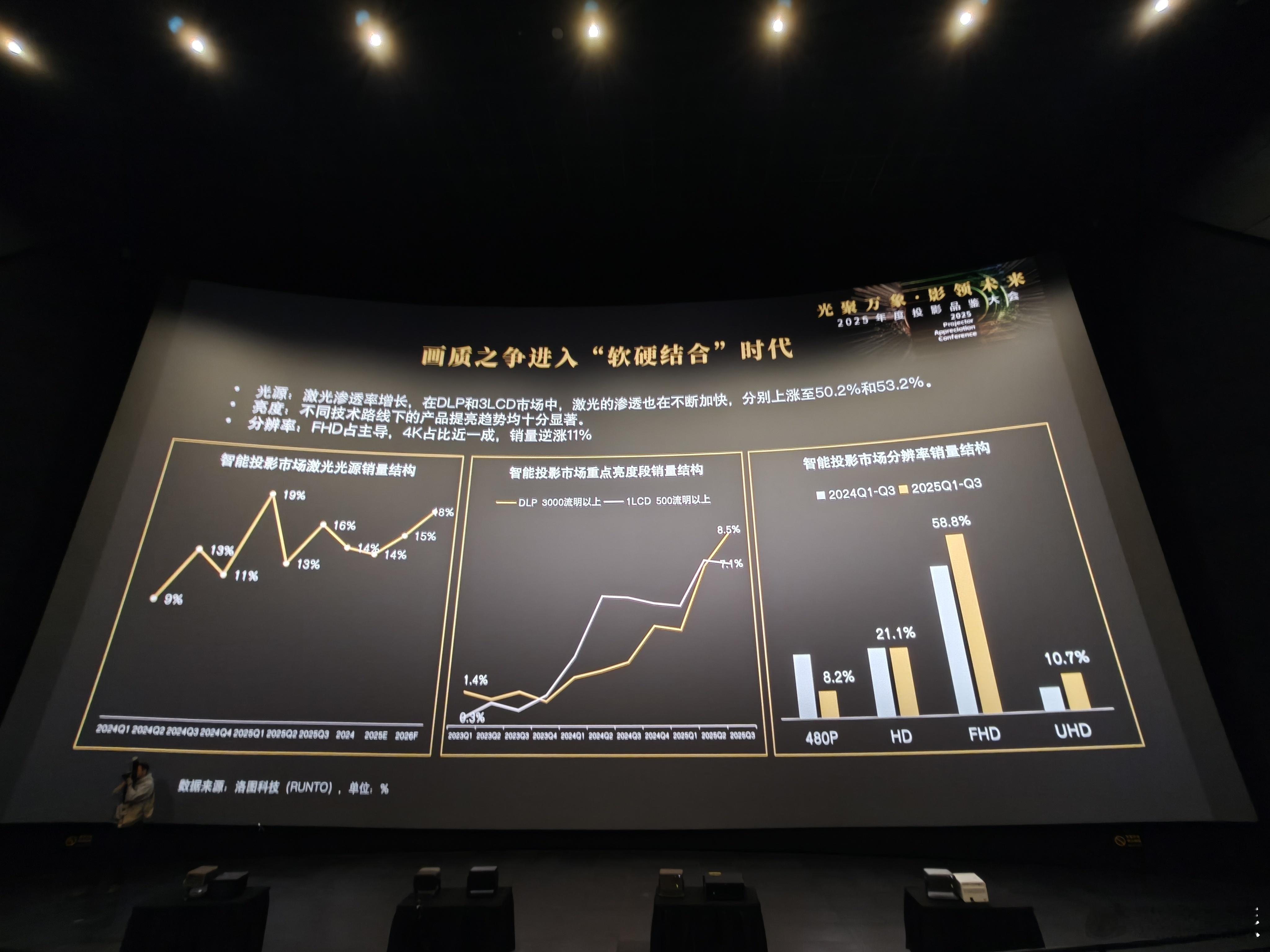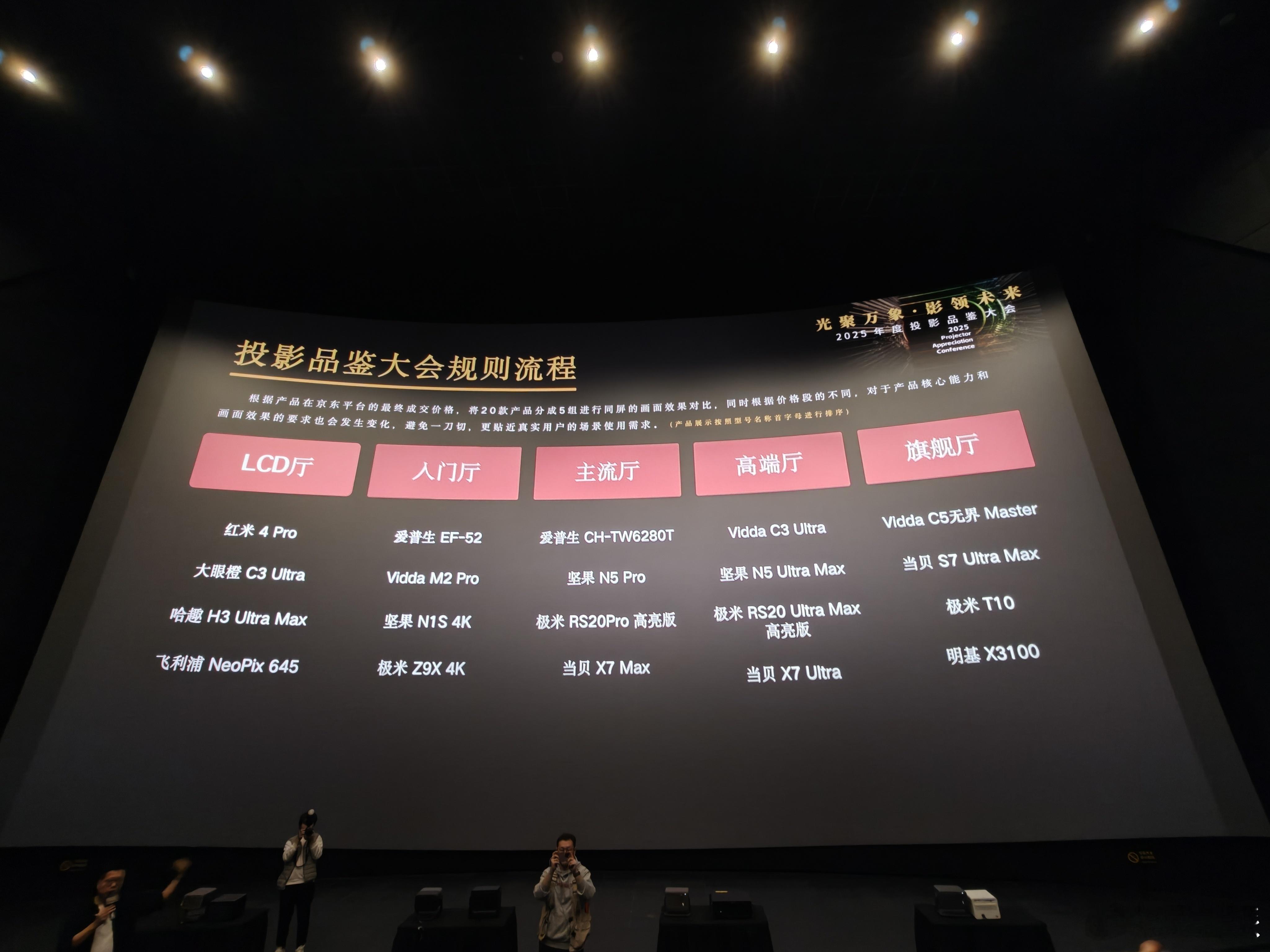 参加了“2025年度投影品鉴大会”,学到了很多投影仪相关的知识和新技术,可以说干货满满。同时也和大家分享一下,方便大家选择适合自己且有性价比的投影仪。 首先,“2025 年度投影品鉴大会”是中国电子视像行业协会投影显示产业分会指导,瑞物评测室主办,专家、媒体、资深用户齐聚,通过“客观测试+主观评价”最终选出了10 款不同价位、最值得买的投影产品。 今年投影行业最大的变化,是CVIA 亮度标准全面落地,亮度虚标的问题终于被彻底解决,选购不再“雾里看花”。同时AI智能技术已成标配,自动对焦、梯形校正、AI场景自适应等功能,让投影真正做到“开机即好用”。 另外,现场我也体验了这20台产品,从千元LCD到超万元旗舰,全价位段覆盖。包括大眼橙 C3 Ultra、Vidda M2 Pro、坚果 N5 Pro、极米 T10……从现场体验的感受说,即便是千元级的产品也能满足绝大部分人的需求。而随着价格提升,功能升级的主要体现在亮度、色彩、对比度、特色功能等方面,最夸张的是万元旗舰产品甚至具备了专业电影院设备叫板的能力,体验感非常震撼。刚详细的解读大家也可以关注