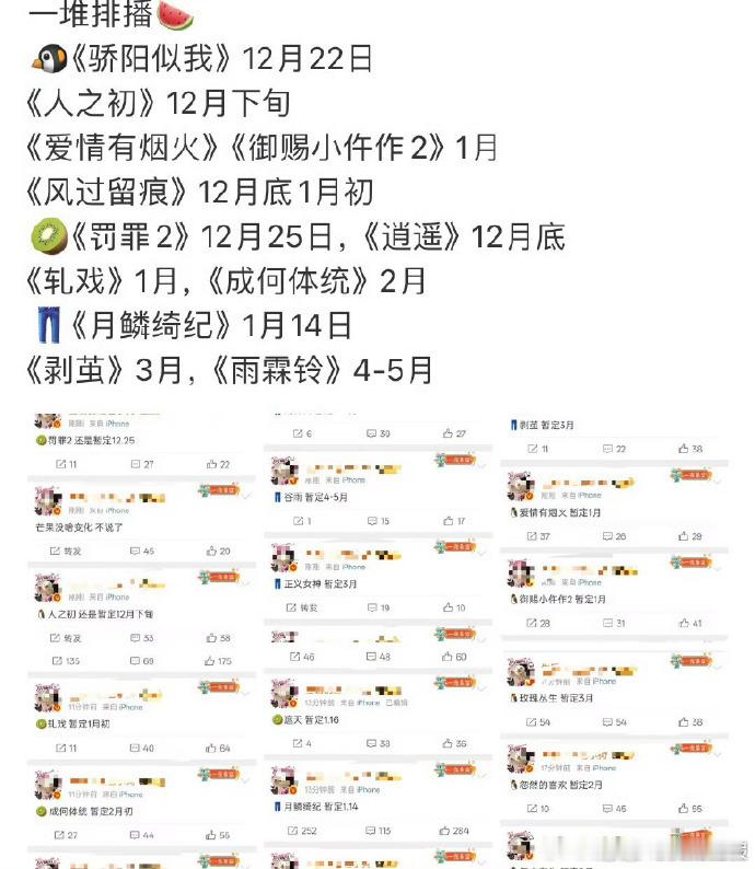三大平台近期排播骄阳似我轧戏月鳞奇迹排播 年末剧圈热闹非凡!平台排播聚焦不同题材,现偶的治愈与奇幻的诡谲碰撞,热度持续攀升。