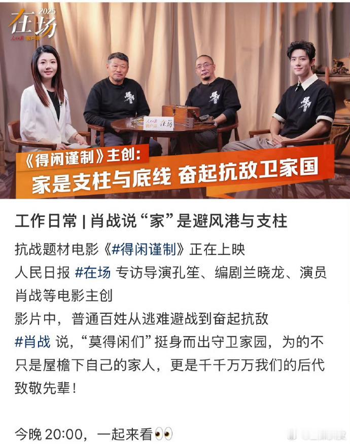人民日报直播预告:得闲谨制主创兰晓龙,孔笙,肖战,今晚人民日报8:00直播