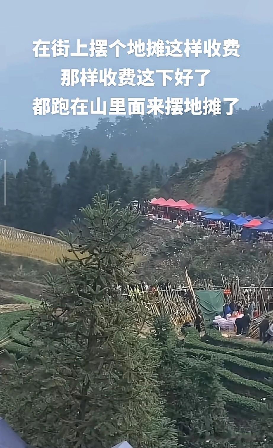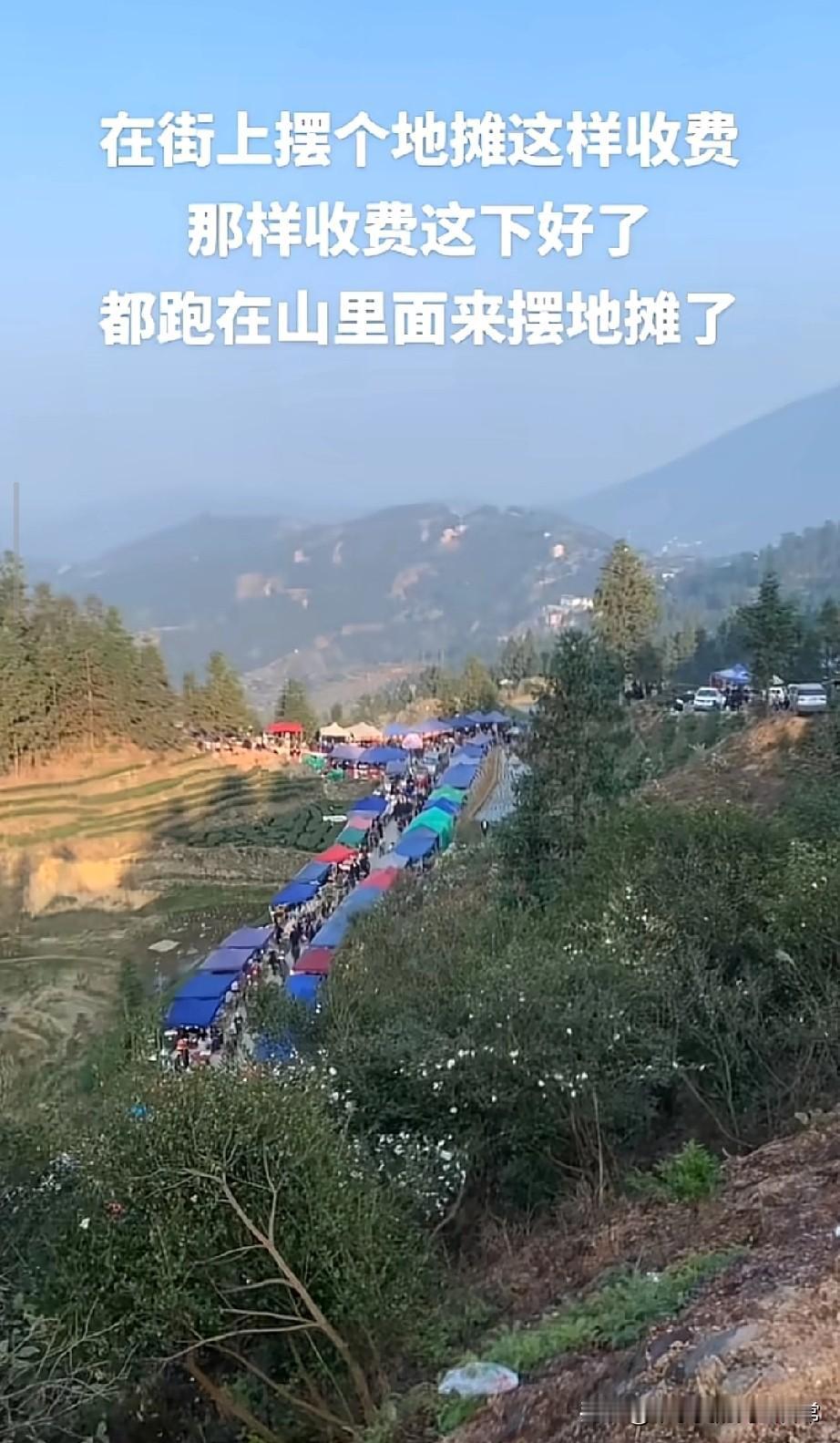 摊贩被逼进深山摆摊!没收费没城管 这画面直接破防了!原本在街头摆摊的小贩们,竟齐刷刷跑到深山里支起了帐篷摊位,一眼望过去,红蓝相间的帐篷沿着山间小道排了长长的一排,场面看着壮观,却藏着说不尽的心酸。 据说是因为街上摆摊各种收费、还总被城管管控,小贩们实在没办法,才躲进了这片深山——这里没有收费项目,也没有城管巡查,终于能安心做点小生意。可深山里客源少、交通也不便,摆摊的难度其实比街上大得多。 一边是街头摆摊的条条框框和费用,一边是深山里的艰难经营,小贩们的选择满是无奈。有人说规范摆摊是城市管理的必要,也有人觉得该给小摊贩多些生存空间。 你觉得城市该对流动摊贩更宽容,还是坚持严格管控才是正确的?