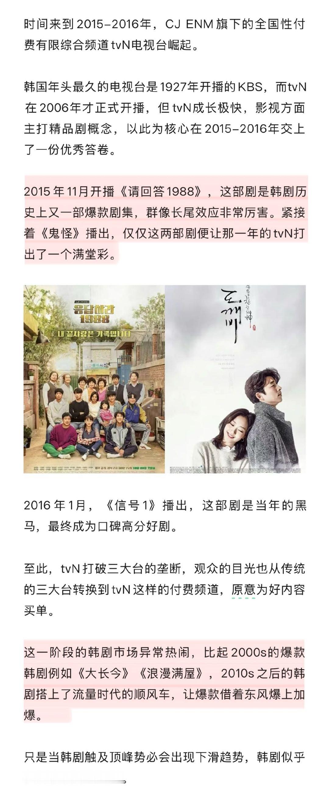 爆款韩剧背后的影视寒冬为什么今年的爆款韩剧变少了 如果说现在是韩剧的“寒冬”,那2013年大概就是最灿烂的盛夏。《请回答1994》《听见你的声音》《主君的太阳》《继承者们》《来自星星的你》,那一年,SBS堪称“爆款工厂”。再往后,tvN用《请回答1988》《鬼怪》《信号》接棒,韩剧完成从三大台到精品有线台的权力交接。可也正是在这一连串高光,韩剧开始从顶峰慢慢往下走,埋下了“降温”的伏笔。