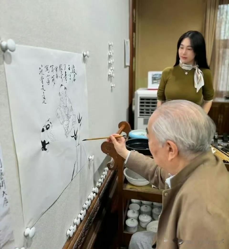 朋友发来范曾的新闻, 问我怎么看这对年纪差了一半还多的夫妻。 我说,你看徐萌看范曾画画的那张照片,她站在一旁,眼神落在笔尖上,像是在欣赏画,也像是在欣赏作画的人。这种专注,不太常见。 范曾这一生,四段婚姻,每一段都有些故事。第一任是才女林岫,几年缘分就散了;第二任边宝华陪他度过难熬的日子,他却喜欢上朋友须遵德的妻子张桂云,经过十年往来,最终和边宝华分开,娶了改名楠莉的张桂云。如今楠莉离世不到三年,他又和徐萌在一起,说自己因为她的照顾从脑梗中恢复,艺术创作也重新有了活力。外人听来觉得浪漫,我却感觉有些凉意。八十多岁的人,身边换了小五十岁的妻子,说是艺林佳话,但看起来更像是一场赌注。 今年八月,女儿范晓蕙突然发声,说父亲被徐萌带离家里,库房的珍贵物品被搬空,人也联系不上。虽然后来有继子发照片说范曾没事,公司的直播也在继续卖画,但家族内部不和的印象已经留下。我不怀疑徐萌的关心给过老人安慰,但婚姻里掺进了财产、子女以及过去的种种关系,原本可能简单的情分就变得复杂了。 范曾曾说自己痴迷绘画,擅长书法,我看他是痴迷于情感牵绊,而且很执着。从沈从文到李苦禅,过去的师友渐渐疏远;从林岫到徐萌,身边人不停更换。他追求的或许是永恒的爱和陪伴,却似乎总是在得到之后又陷入新的局面。徐萌不简单,但更不简单的,是范曾身上那种到老都没有停息的渴望。 如今他的画作依然在拍卖,风波渐渐平息,只希望这位画了一辈子的老人,真的像说的那样一切安好。