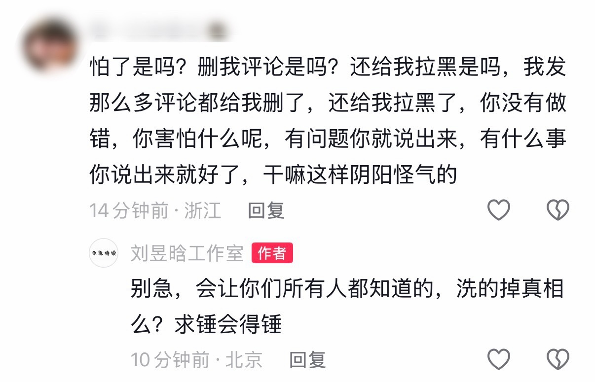 刘昱晗工作室这是咋了发文说人不红是有原因的并且把头像改成了“未完待续”,还在评论里回复说会“求锤得锤”…刘昱晗前段期间刚播完《暗河传》和《水龙吟》