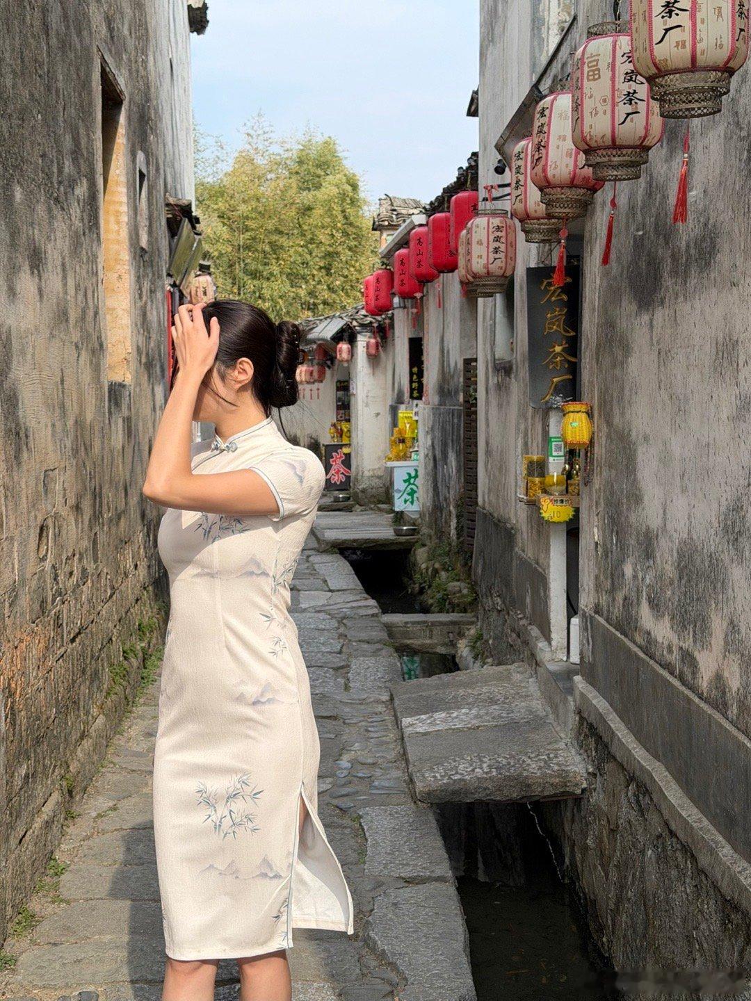 又认识了一个新字 yi 黟县古镇很静谧 路边小店买的旗袍也够拍几张游客照📸 黄山·黟县