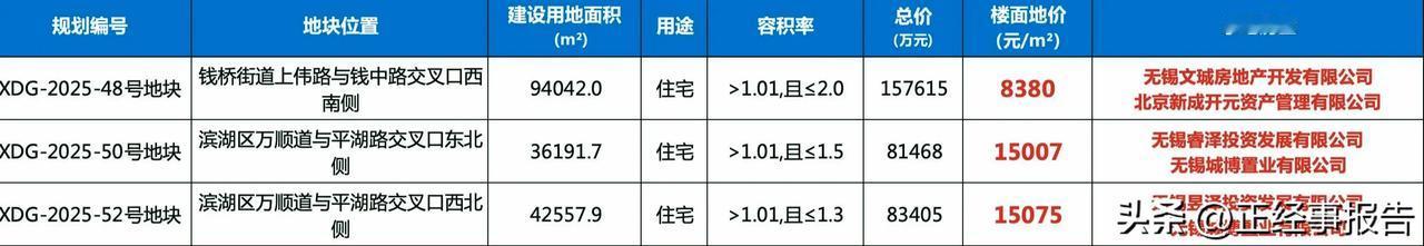 2025年最后一个月无锡土拍市场依然活跃。 11日刚刚三幅地以底价成交,除了惠山区钱桥原钢厂地块的容积率最高在2以外,另外两块位于滨湖区山水城板块的地块容积率要求分别在1.5以下和1.3以下。 看来偏居滨湖南部的山水城板块是要把自身的山水资源发挥到极致了。这个版块目前已经有山水拾涧和和锦里等商品房项目,而且滨湖区已经将省锡中滨湖分校和金桥红沙湾学校放到了那里,看来未来仍然会有高端供给。