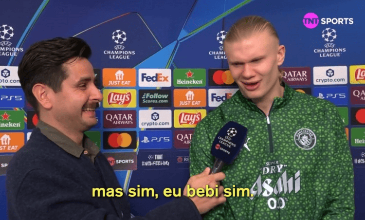 虎扑12月11日讯在曼城于本轮欧冠赛事中以2-1的比分成功击败皇马后,曼城前锋哈兰德接受了TNT体育巴西版的采访。