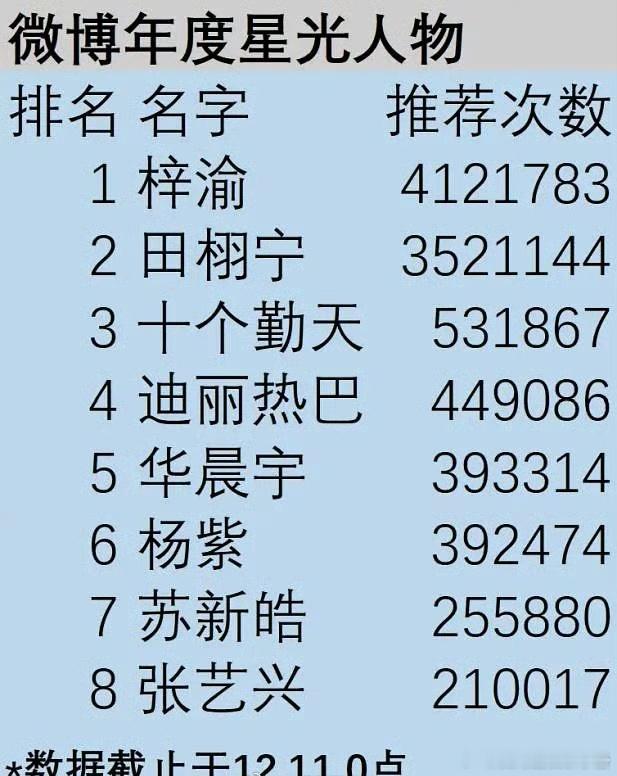 微博之夜星光人物排名,符合你的预期吗?TOP5:梓渝、田栩宁、十个勤天、迪丽热巴、华晨宇微博之夜