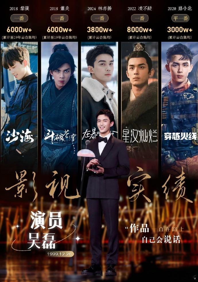 吴磊星光值暴涨暴涨热度美美接住了哈!吴磊又被谁惦记上了懂得都懂~单说实绩强全平台现偶年冠男主,手握大男主男频剧《剑来》就已经够爽了!