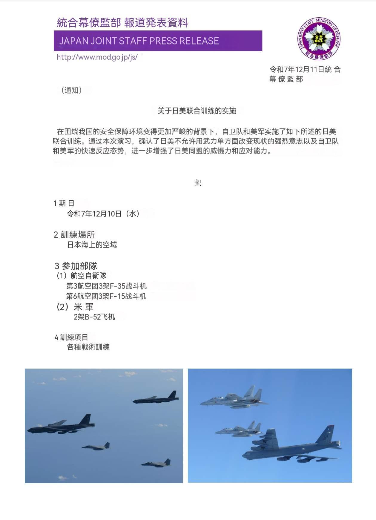 中俄第10次联合空中战略巡航刚结束,12月10日,日本就把美国给拉上组织了一场类似演练,由美国出动两架B-52H战略轰炸机。日本则出动F-15J、F-35战斗机护航,在日本海上空进行联合练,日本方面对演习进行了说明。声称通过美日演练,突出强调美日不允许武力改变现状的意愿,以及美日武装力量快速反应能力。 “狐假虎威”很形象,面对中俄大规模空中编队巡航,包括图-95MS、轰-6K,以及歼-16、苏-30还有A-50、空警-500预警机这样的组织。日本瞬间就看吊了,除了出动战斗机空中跟踪伴飞外什么都做不了,为了在“雷达照射”后能争点面子回来,只能求助美国弄了两架老爷机示威,效果如果大家都懂。