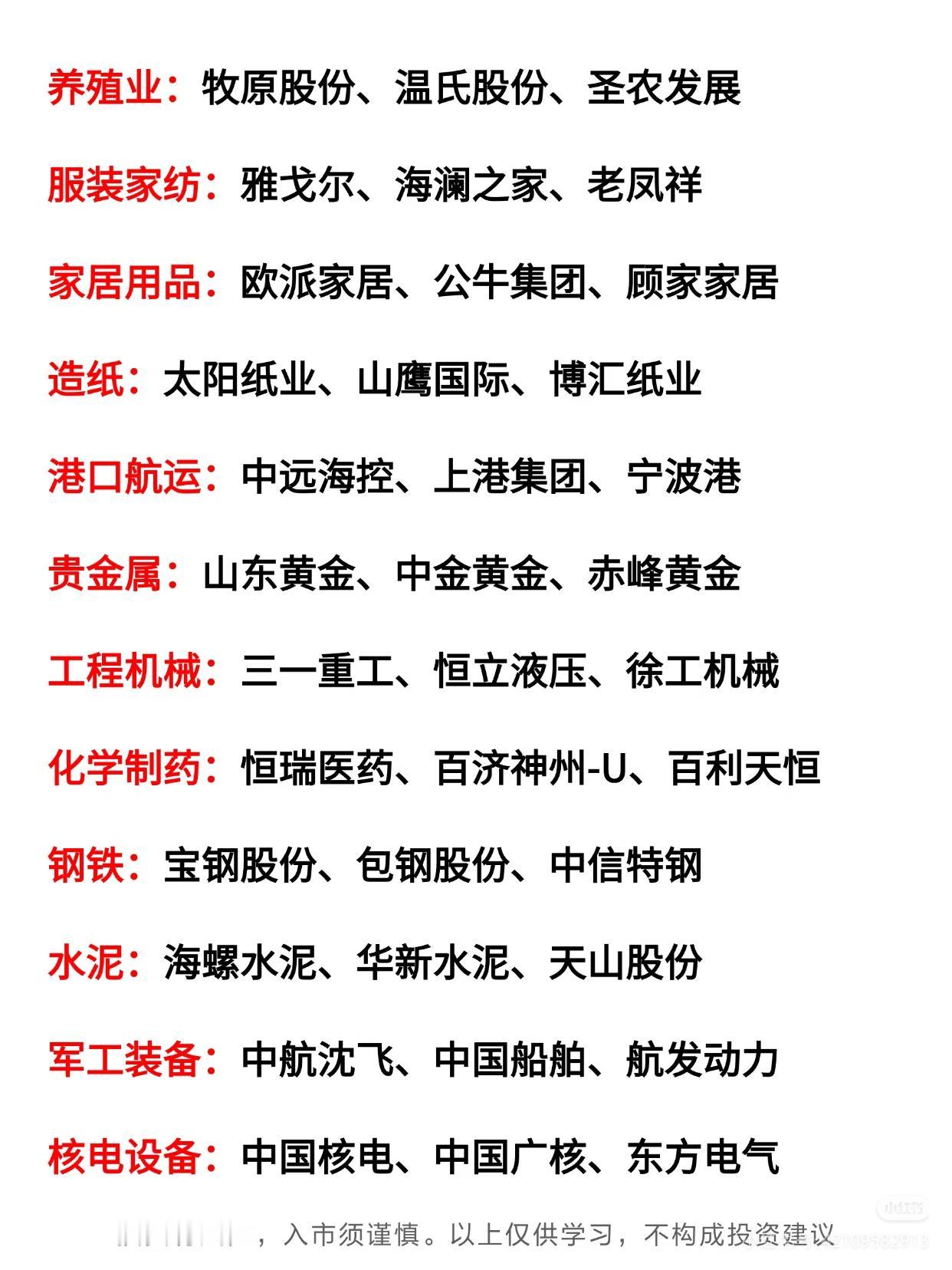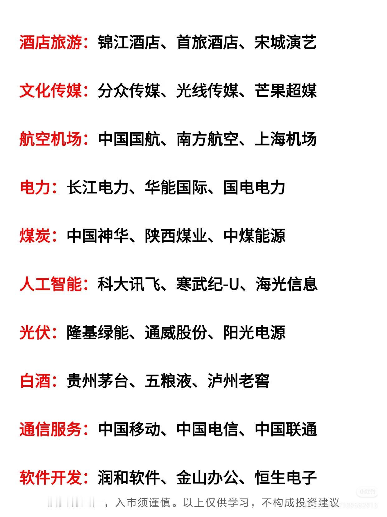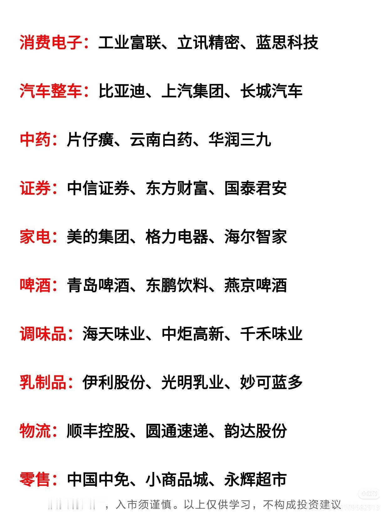 “A股不同行业的细分龙头企业” 第1张图聚焦半导体、电池、电子元件、通信设备、IT服务、计算机设备、汽车零部件、游戏8个行业,分别列出对应龙头企业,如半导体领域的中芯国际、寒武纪U、海光信息,电池领域的宁德时代、亿纬锂能、国轩高科等。 第2张图涵盖消费电子、汽车整车、中药、证券、家电、啤酒、调味品、乳制品、物流、零售10个行业,包含工业富联、立讯精密、蓝思科技(消费电子),比亚迪、上汽集团、长城汽车(汽车整车)等企业。 第3张图涉及酒店旅游、文化传媒、航空机场、电力、煤炭、人工智能、光伏、白酒、通信服务、软件开发10个大类行业,例如酒店旅游的锦江酒店、首旅酒店、宋城演艺,人工智能的科大讯飞、寒武纪-U、海光信息等。 第4张图包含储能设备、风电设备、医疗服务、银行、保险、石油开采、房地产、电网设备、橡胶、食品加工10个行业,像储能设备的阳光电源、科华数据、上能电气,医疗服务的药明康德、爱尔眼科、泰格医药等均被列出。 第5张图覆盖养殖业、服装家纺、家居用品、造纸、港口航运、贵金属、工程机械、化学制药、钢铁、水泥、军工装备、核电设备12个行业,比如养殖业的牧原股份、温氏股份、圣农发展,军工装备的中航沈飞、中国船舶、航发动力等。