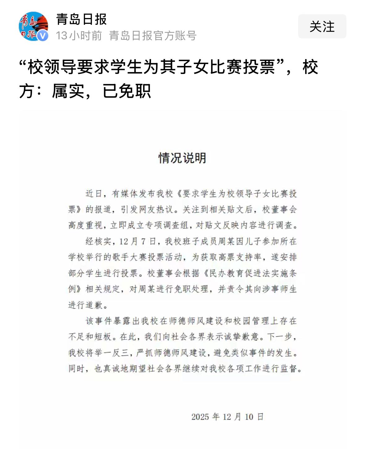 校领导让学生给儿子拉票被免职! 也是有点冤! 当然,这是站在一个父亲的角度来说的