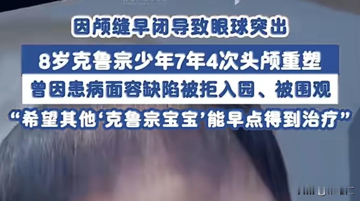 7年4次换脸手术!8岁克鲁宗男孩终抬头,妈妈镜头里全是泪与光 上海这位妈妈的镜头,看哭了无数人!8岁儿子患上罕见的克鲁宗综合征,颅缝早闭把脑袋挤得变形,眼球突出得吓人,入园被拒、出门被围观,小小年纪就尝尽了异样眼光。 为了让儿子能正常抬头看人,妈妈带着他辗转全国求医,7年里咬牙扛过4次颅面重建大手术。每次进手术室前,孩子都攥着妈妈的手说“我不怕”,那份坚强,让大人都忍不住红了眼眶。 第一次手术时孩子才1岁,医生要把畸形的颅骨切开、重新拼接,光是术后监护就熬了半个月。妈妈守在病床前,看着孩子插满管子的小脸,心都碎成了一片片。 后续的修复手术一次比一次难,孩子从一开始哭着喊疼,到后来会自己给自己打气,说“好了就能和小朋友一起玩”。每次拆纱布,妈妈都紧张得发抖,生怕看不到期待的模样。 以前孩子出门总低着头,用帽子遮住脸,听到别人议论就往妈妈身后躲。现在术后恢复得越来越好,他终于敢抬起头,笑着和同学打招呼,还主动报名参加了学校的朗诵比赛。 妈妈把这7年的求医路拍成视频发出来,不是为了卖惨,而是想让更多克鲁宗宝宝的家长看到希望。她说自己走了太多弯路,不想再有人抱着孩子茫然求医。 网友看完泪奔,有人留言说“太心疼了,孩子太勇敢”,还有同病相怜的家长私信她,说看到视频终于知道该带孩子去哪治疗,这份分享,帮了太多家庭。 克鲁宗综合征发病率极低,很多地方的医生都没见过,误诊漏诊是常事。这位妈妈的坚持,不仅救了自己的孩子,更给这个罕见病群体点亮了一盏灯。 现在孩子慢慢融入了校园生活,虽然疤痕还在,但笑容越来越灿烂。妈妈说,只要儿子能健康长大,能自信地抬头挺胸,所有的苦都值了。 罕见病家庭的路,从来都不好走,但只要不放弃,就总有柳暗花明的一天。这份母爱和孩子的坚强,比任何特效药都管用。 命运给孩子关上一扇门,母爱就会为他凿出一扇窗;勇敢从来不是不流泪,而是流着泪,依然大步向前走。