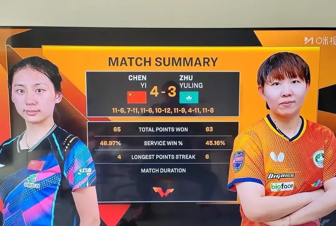 2025WTT香港总决赛第一天,国乒女单两场内战直接炸场。 陈幸同碰石洵瑶,开局就拧巴。石洵瑶先拿一局,陈幸同立刻用11-3扳平。接着石洵瑶又赢一局,眼看要掉队,陈幸同直接12-10硬掰回来。后面两局更狠,14-12和11-8连拿,4-2翻盘。这关键分的硬气,没谁了。 陈熠对朱雨玲,直接干满七局。比分来回跳,你赢一局我跟一局,最后陈熠11-8收尾。不仅赢了比赛,更是把自己的上限往上推了一把。 两场球看下来,国乒内部的卷度是真吓人,不过这种卷才是他们一直稳的底气。