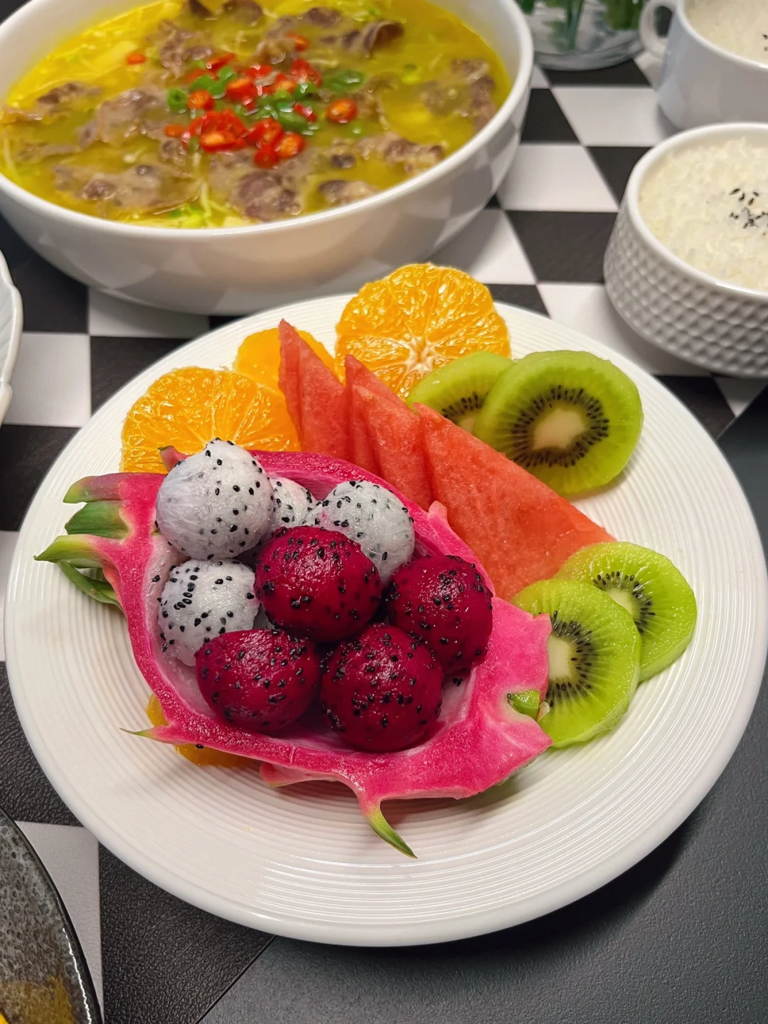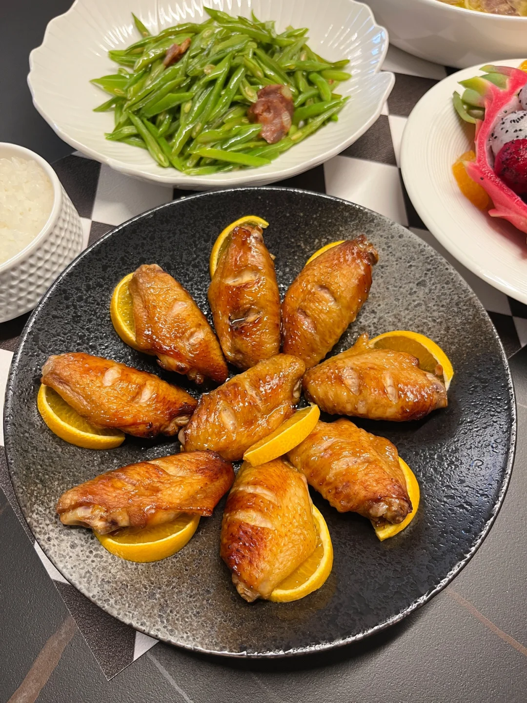 晚饭菜单 🌈酸汤肥牛:酸爽开胃,配了金针菇和豆芽,秒 光! 🌈扁豆炒腊肠:快手菜,简单有好吃。 🌈蜜汁烤翅:儿子最爱,好吃到舔手指。 🌈水果拼盘:今天的果盘很满意,也就拍了100 张照片吧哈哈哈哈。