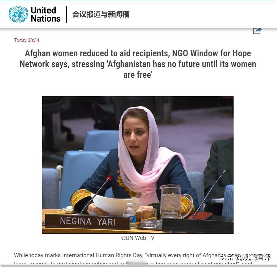 在安理会关于阿富汗问题辩论会上,维护妇女权益的非赢利组织“希望之窗网络”负责人、阿富汗第一美女称:“在坐的安理会成员们,你们如果无视或有意忽视塔利班对女性和女孩的歧视性法律和压制性做法,无论提供多少援助,都无法解决女性和女孩每天面临的极端性别隔离制度。甚至是,你们的与己有利或无政治要求的援助越多,越助长塔利班的反女性人性行为。请记住,人道主义援助是有政治要求的,那就是尊重所有人的基本尊严。” 人道主义政治化对于塔利班这样的组织来说有错吗?!