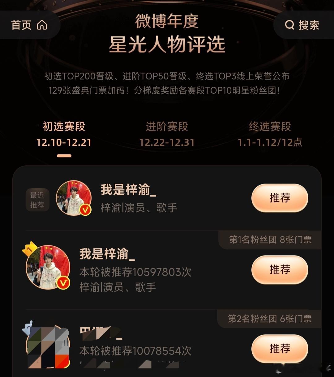 梓渝天天都是微博文娱top1啊,而且微博之夜[微博年度星光人物]又是断层第一,领先第二名那个谁叫啥来着想半天想不起来爱谁谁吧,断层领先50多w,yuni论人头和投票从不怕,你们一起上吧