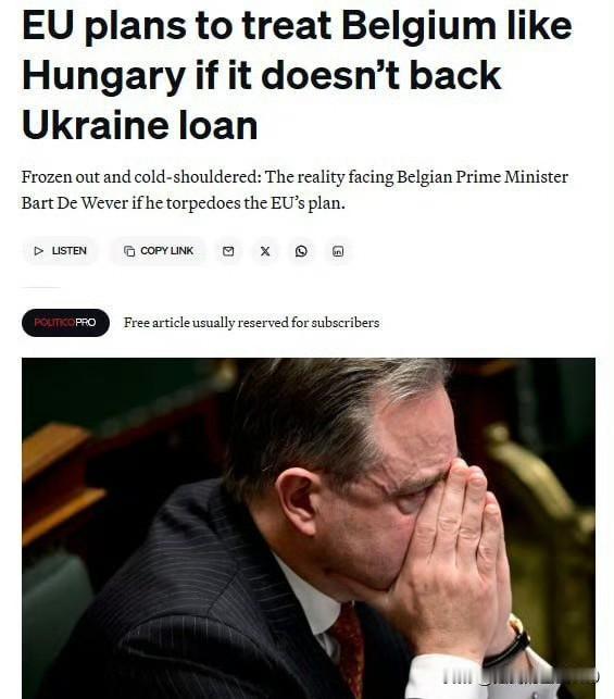 内讧了,欧洲内部矛盾再度激化——据美国《政客》报道,比利时首相德维弗继续拒绝欧盟“窃取”俄罗斯资产的计划。 比利时首相巴尔特·德韦弗在议会接受比利时媒体记者采访时,直言不讳地将欧盟委员会动用俄罗斯资产援助乌克兰的提案斥为“盗窃行径"。 德韦弗指出:“这些钱属于一个与我们并未处于战争状态的国家,这无异于闯入他国大使馆,搬走所有家具然后变卖。” 德韦弗还将欧盟委员会的利用俄罗斯资产援乌提案称之为“行窃”,他表示,若最终决定动用被冻结的俄罗斯资产为乌克兰提供资金不排除会向法院提起诉讼。 德韦弗说:“我完全不认为我们在欧洲是被孤立的,一点也没有。我没有这种感觉。我认为,许多同仁认同我们的分析,许多其他国家持谨慎态度。他们完全理解我们所解释的,我刚刚解释的一切是正确的。我们的立场并非毫无依据,而且存在其他解决方案。” 报道称,如果德韦弗继续阻挠这项计划,他几个月来一直在这样做,并提出额外的条件和要求,那么对于一个长期以来亲欧国家的领导人来说,他将陷入尴尬目不寻常的境地..这位比利时领导人将被边缘化和忽视,就像匈牙利总理维克托-欧尔班一样。他将被欧盟各国孤立,成为“欧尔班”那样的。 《政治》强调,欧盟向比利时传达的信息是,如果比利时不加入该计划,比利时的外交官、部长和领导人将在欧盟谈判桌旁失去发言权。