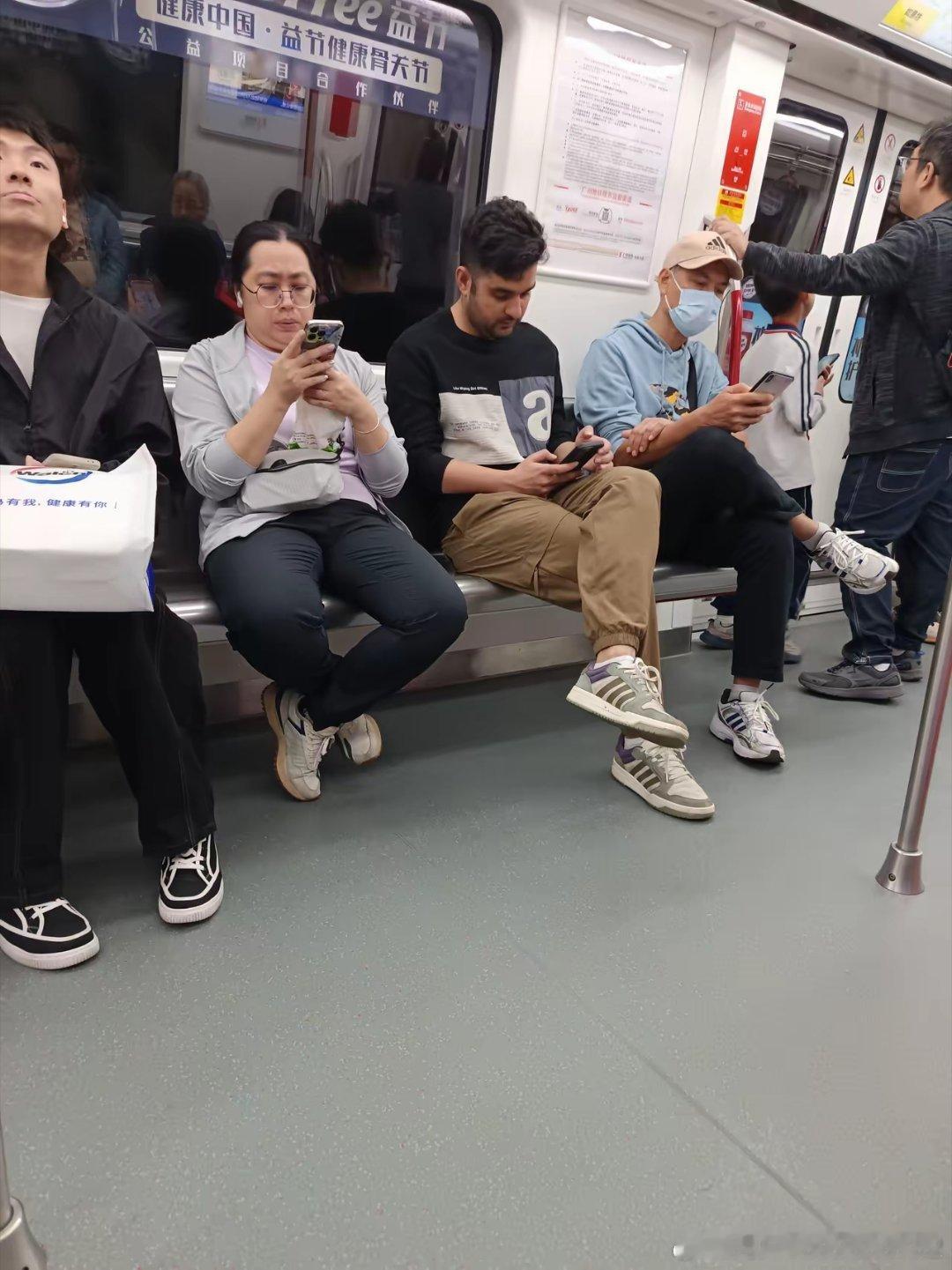 朋友今日坐11号地铁去芳村,车厢里老婆突然用手捂着鼻子遮挡刺鼻香水味,原来对面一个印度人翘着二郎腿看手机(见图一);进入芳村后这个印度人下车,又一个印度人进车厢坐在同一位子也翘着二郎腿、咋这么巧(见图二)。吃完晚饭后坐1号地铁回家,同一车厢又有四个印度人(图三和图四),另外站着的一男一女拍不到正面就没有拍。广州现在常见到印度人了,以后会不会也会像黑二代那样出现印二代了