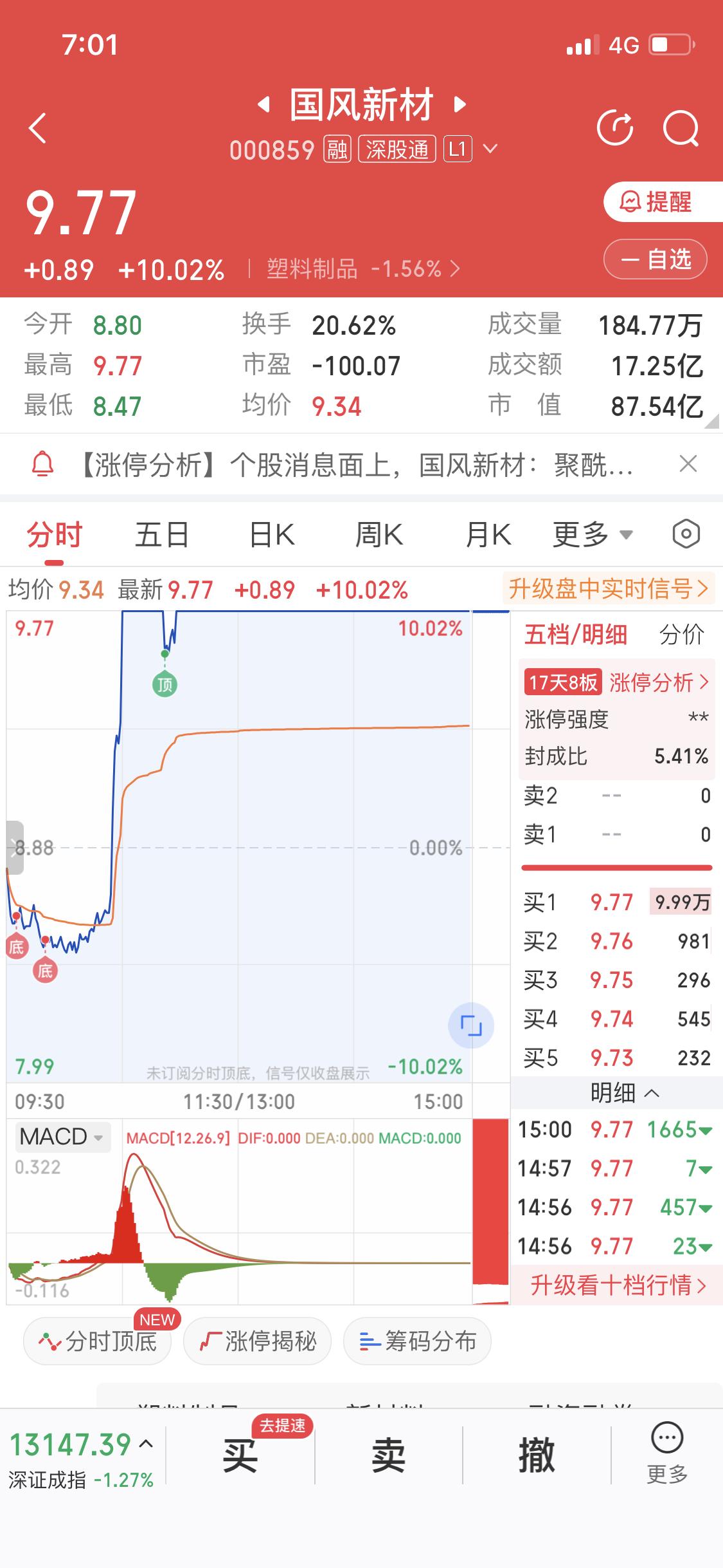 12月11日,光刻胶概念局部异动,国风新材直接直线涨停,走出9天4板的态势,这走势属实亮眼!10点29分,它就触及涨停板,珂玛科技涨超10%,还有华懋科技等一众股票跟涨。 不过,它所属的塑料行业当天是下跌的,领涨股是平安电工。从资金流向看,12月10日主力和游资都在净流出,分别为5600.79万元和5772.57万元,只有散户资金净流入1.14亿元。证券之星还提示,国风新材行业竞争力护城河一般,盈利能力一般,虽营收成长性良好,但股价偏高。这波涨停,后续走向还真不好说。