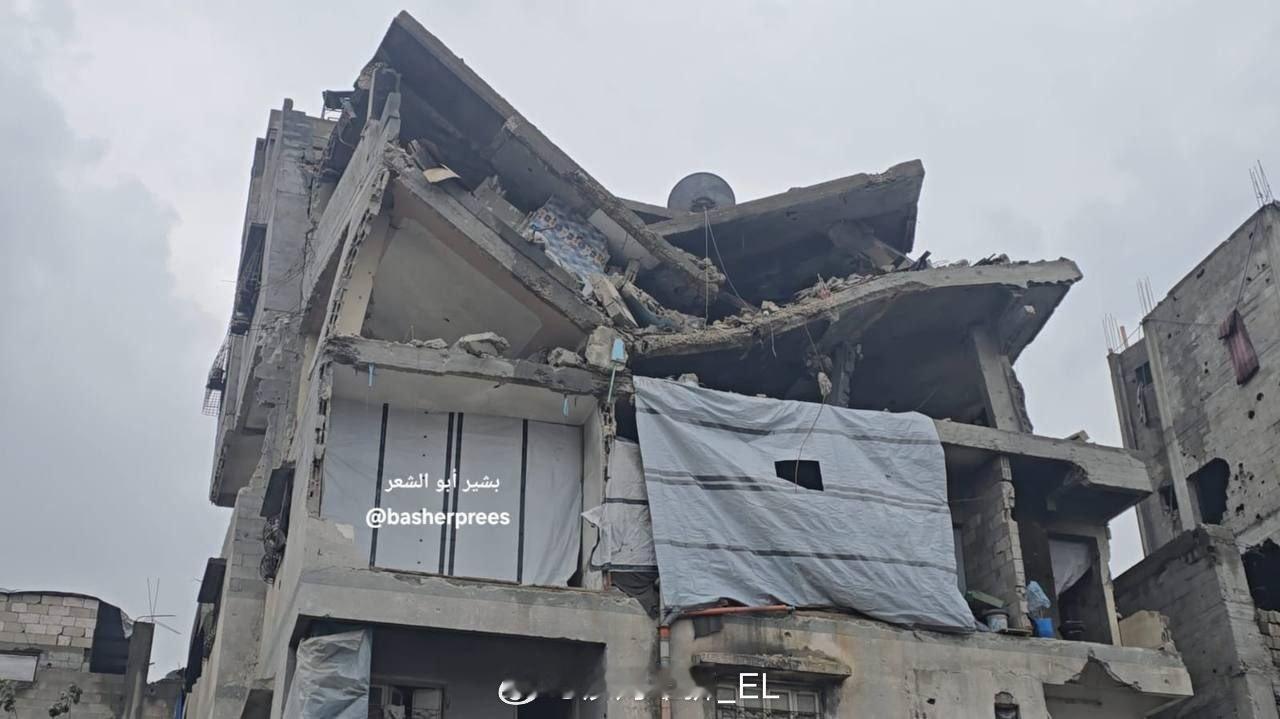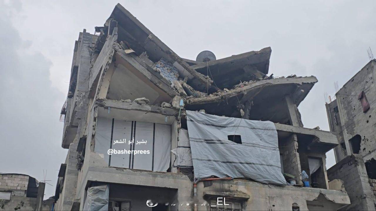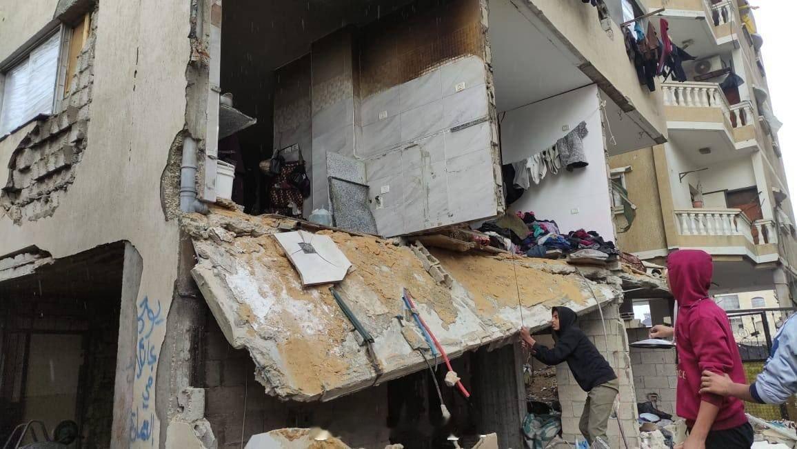 巴勒斯坦加沙市扎伊图恩街区,在以色列轰炸中遭受破坏的住宅楼在暴雨中进一步倒塌。巴以冲突
