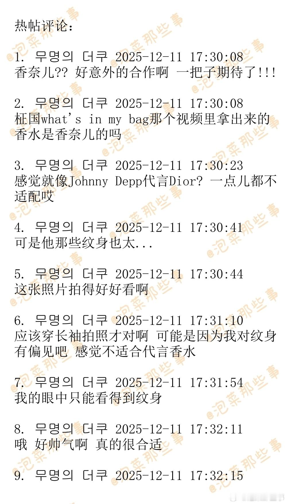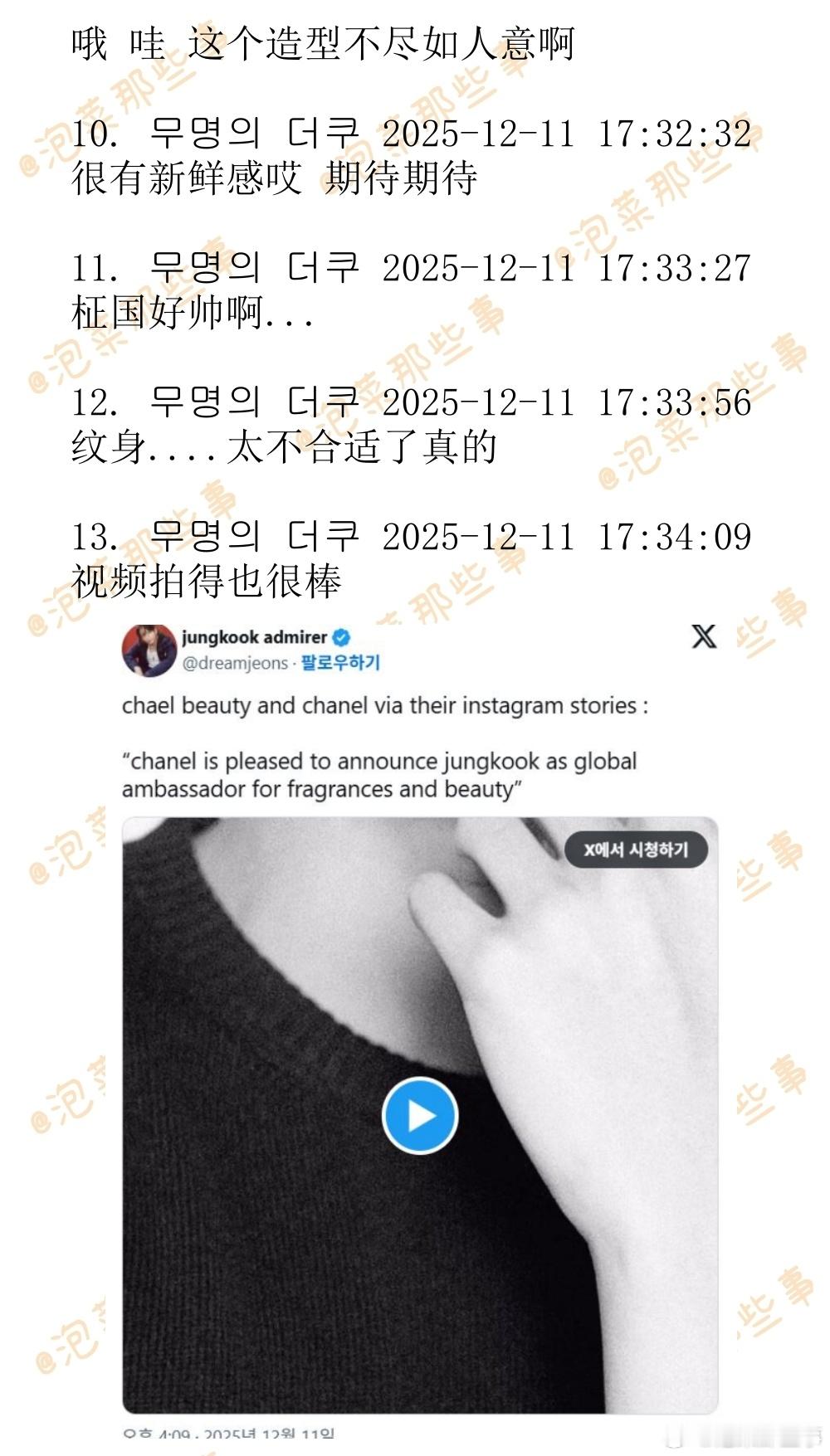 🔥🔥韩网500楼热帖评论翻译🔥🔥田柾国官宣香奈儿香水与美妆全球品牌大使田