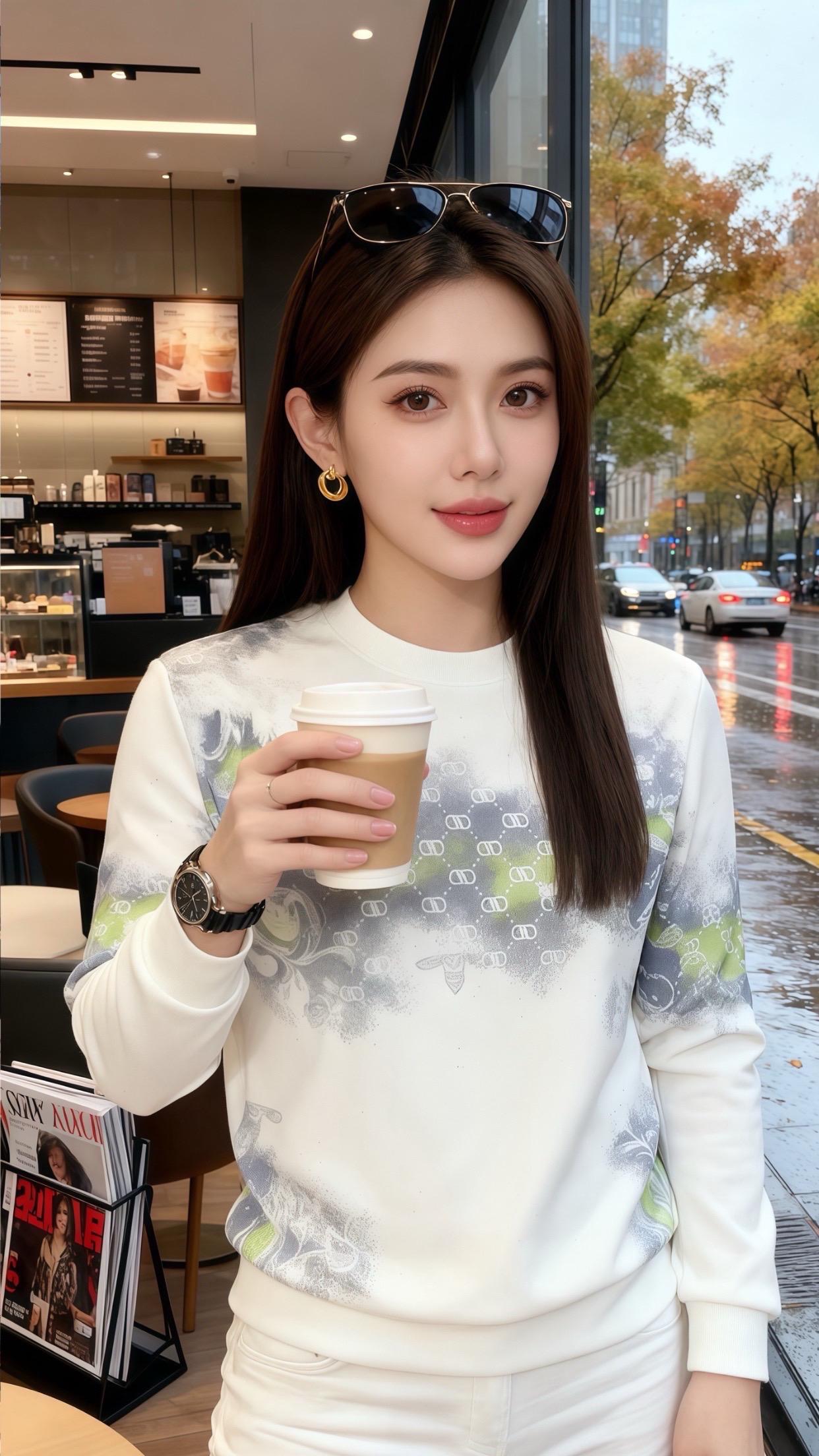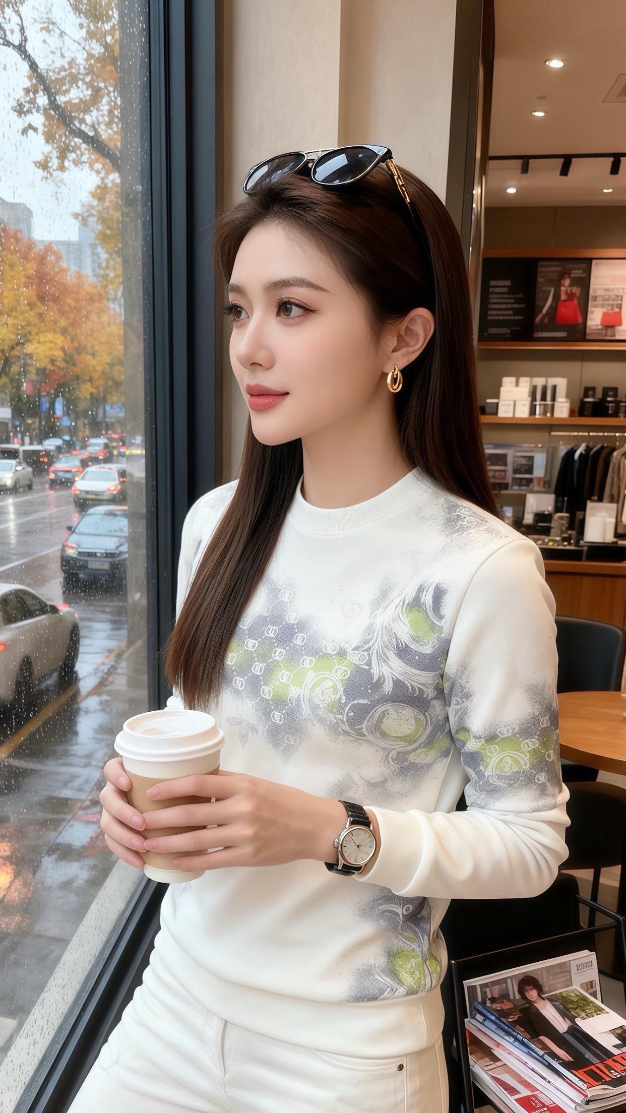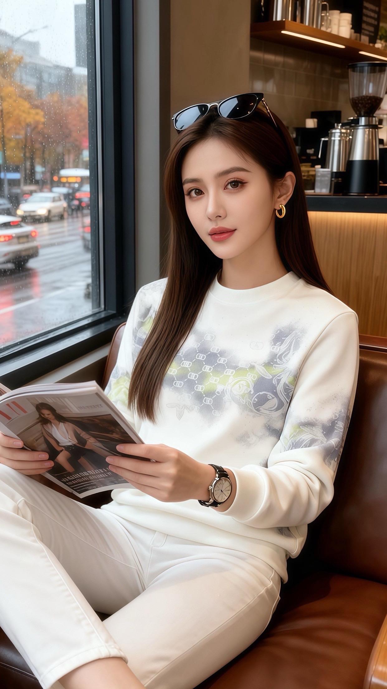 雨雾裹着秋黄漫过橱窗时,皓明在成衣区撞见许妍——她指尖轻碰模特身上的白卫衣,同款衣料贴在她肩线,水墨纹顺着腰侧柔成淡调,白裤衬得脚踝纤薄,腕上那只他的旧表,宽出的表带晃得他心跳轻颤。 后来她蜷在咖啡馆软椅里,卫衣的绒光裹着拿铁香,墨镜滑在发顶,耳饰的金在雨色里泛着暖。“这花色衬你。”他递热毛巾时,指腹擦过她手背。许妍拢了拢袖口笑:“模特那件,是按你肩宽挑的。” 窗外车流碾过湿叶,他忽然懂了:好的穿搭从不是好看,是让每处针脚的褶皱里,都藏着“我们”的形状。