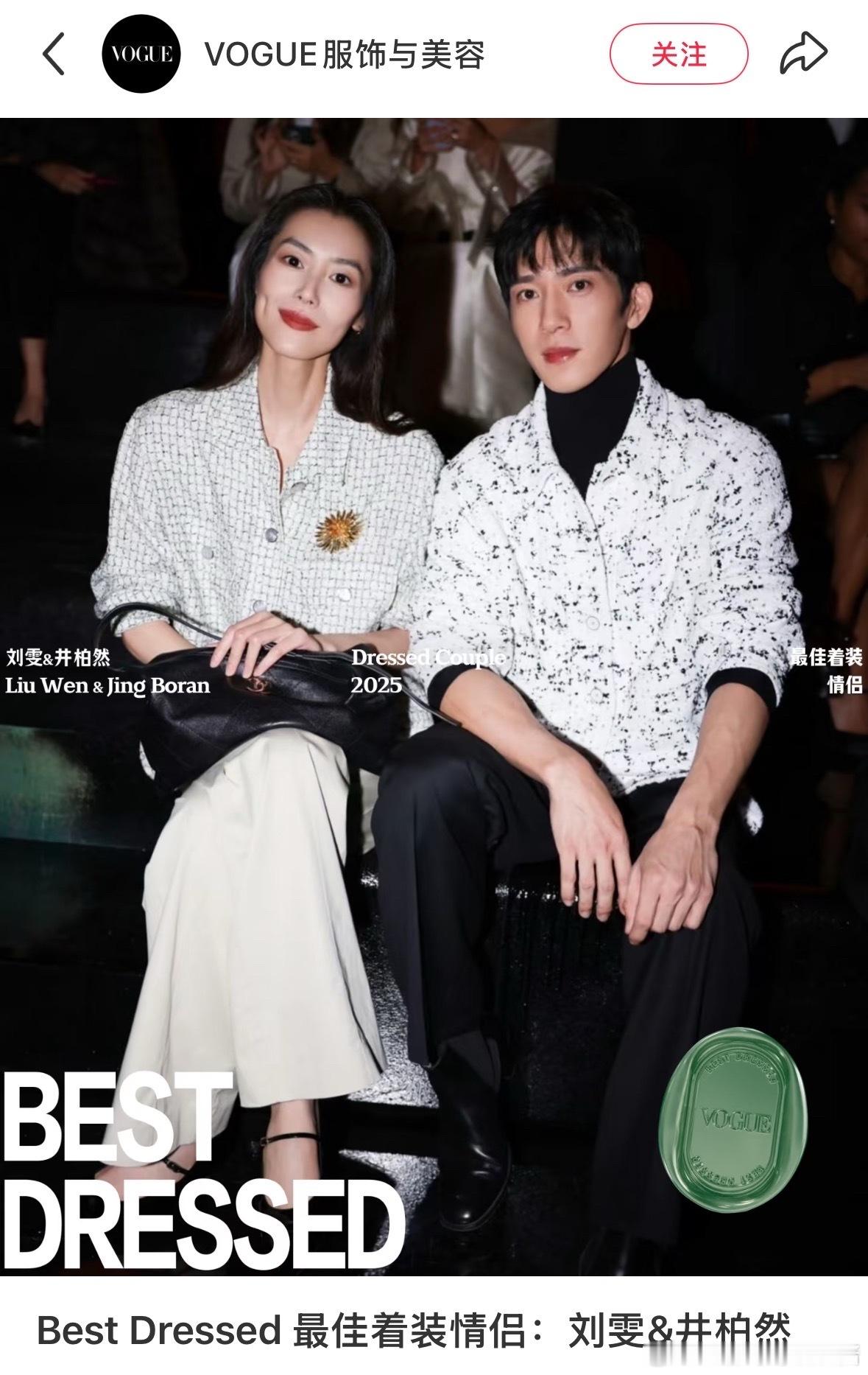 哈哈哈哈😂笑死了刘雯井柏然没有官宣,但是!!!!vogue官宣了呀!Best Dressed 最佳着装情侣:刘雯&井柏然