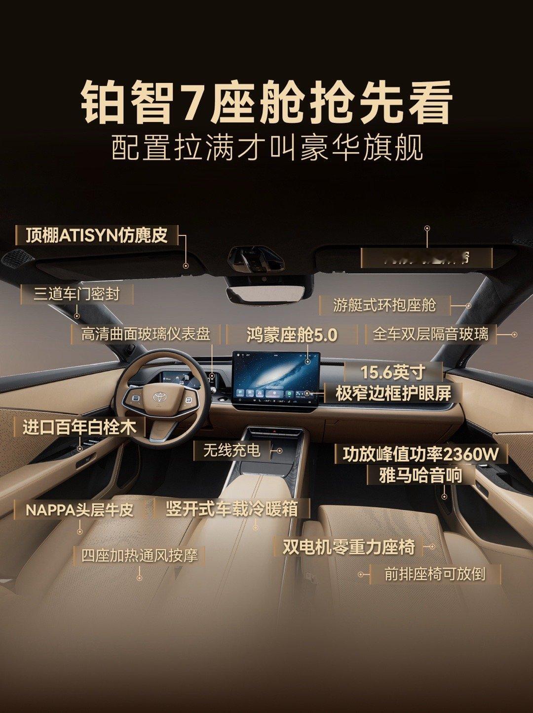 广汽丰田铂智7提速喽!明年一季度正式上市,铂智7首批展车提前品鉴,明年购置税补贴退坡电车怎么买?12月31日前订车,不管2026年购置税政策怎么变,多出来的钱,广汽丰田帮你兜底!毕竟是广丰的D级旗舰,坐进去第一感觉就是舒服,NAPA头层牛皮座椅软乎乎的,长途开累了,零重力模式一打开,疲惫感瞬间消失。还有23个扬声器的雅马哈7.1.4立体音响,放首喜欢的歌,环绕音效直接拉满,比在影院看电影还沉浸!双腔空悬+SDC减振器,过减速带、坑洼路的时候,车身稳得一批。华为Drive ONE电驱,提速又快又顺,超车毫不费劲。最特别的是“一车三生态”,鸿蒙座舱5.0操作丝滑,导航、语音控制反应超快。Momenta智驾实力雄厚,新手也能轻松开。小米生态加入,下车前提前开空调、开净化器,智能家居无缝衔接,太方便了!更让人放心的是广汽丰田招牌的“三担责”政策:电车自燃、智能泊车事故、电池衰减,这三件最让人担心的事,厂家全担责!,买的就是一个安心顺心!