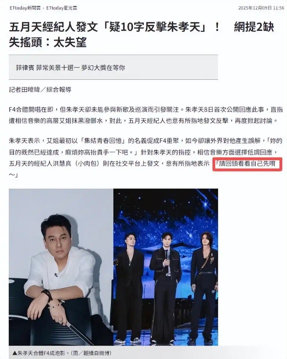 五月天经纪人8字回怼朱孝天,替F4出了口恶气,大S说的果然没错