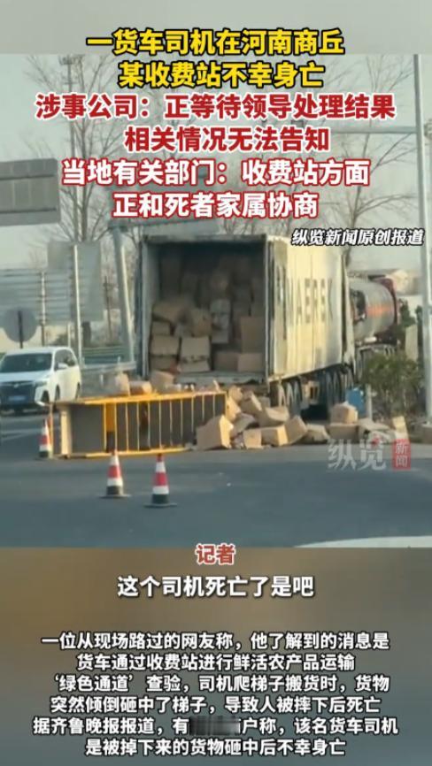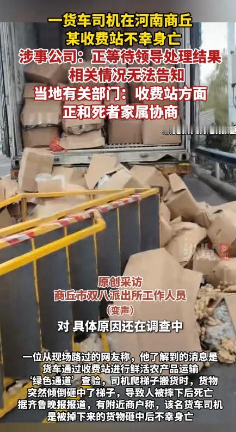 河南商丘,一名货车司机在过收费站时,因为要配合检查货物,爬上了收费站的梯子拍照,结果梯子出了问题,司机从两米多高的地方摔下来,最终没能救回来,更让人唏嘘的是,当时司机连顶安全帽都没戴。 这本来是一趟再寻常不过的长途运输,司机师傅拉着满满一车从广西运来的生姜,要送到山东去,走的是 “绿通” 通道,按政策拉蔬菜这类农产品,只要查验清楚货物,就能免去过路费,就是为了让农产品流通更顺畅,也能让跑长途的司机少点成本、快点赶路。 跑长途的老司机都知道,这不过是万千公里路程里的一个普通站点,验货、放行,本来该是顺顺利利的事儿,可谁也没想到,这趟常规的查验,最后竟变成了夺命的意外。 按说查验货物是收费站工作人员的职责,不管是爬高看货还是拍照取证,都该由站点的人来做,尤其是登高作业,按理说得有两个人配合,防护措施更是不能少,这都是基本的安全规矩。 可那天不知道是后面排队的车多催得紧,还是这种 “司机代劳” 的方式成了默认的习惯,工作人员要拍照验货,最后却是司机师傅自己手脚并用地爬上了梯子。 他当时心里大概只想着快点验完货赶路,别耽误了生姜的新鲜度,没多想这梯子稳不稳,也没人提醒他该戴个安全帽。 现场没有任何防护用具,他甚至连最基础的安全意识都没来得及顾及,就那么爬上了那架只有两米多高的梯子,两米多的高度,平时抬个脚、伸个手就够着了,可在那个瞬间,这短短的距离却成了一道生死线。 就在他在高处挪动生姜箱子,想配合工作人员找到合适的拍照角度时,脚下的梯子突然出了问题,不知道是早就坏了没人修,还是受力不当发生了移位,没等他反应过来,整个人就失去了平衡,头朝下直直地摔了下来,没有任何缓冲,没有任何保护,这一摔,就再也没能站起来。 等人们反应过来冲过去的时候,司机师傅已经没了意识,大家赶紧想办法抢救,可因为是头部先着地,伤势太重,最后还是没能救回来,一个为了生计奔波、跑遍大半个中国的汉子,就因为这么一次本不该由他来做的登高作业,永远地离开了家人。 家属赶到现场后整个人都崩溃了,他们想不通好好的一个人,怎么过个收费站就没了?查验货物是收费站的工作,为什么要让司机自己爬梯子?那架梯子到底是早就有问题没人管,还是工作人员为了省事,压根没考虑过安全隐患? 更让他们心寒的是,当时要是有人递一顶安全帽,要是有人提醒一句 “危险”,要是工作人员自己去验货,这场悲剧是不是就不会发生? 这事儿越想越让人唏嘘,“绿通” 政策本来是好意,是为了方便司机、保障农产品流通,可到了这里,却因为职责不清、安全意识淡薄,变成了催命符。收费站有核查货物的权力,就该承担核查过程中的风险,而不是把风险转嫁到司机身上。 司机师傅想着快点赶路、不耽误送货,工作人员或许想着快点放行、不堵着后面的车,可谁都没把 “安全” 放在第一位,那架小小的梯子,本来该是方便工作的工具,最后却成了没人维护的废铁,那顶本该存在的安全帽,成了最让人遗憾的缺失。 两米多高的距离说起来不算高,可一旦失去保护,头朝下摔下来就是致命的伤害,这不是突如其来的天灾,而是一场完全可以避免的人祸,如果职责没有错位,如果安全措施到位,如果有人多一句提醒,这个家庭就不会失去顶梁柱,跑长途的路上,也会少一场这样的悲剧。 现在再提起这事儿,不少跑长途的司机都觉得心里发紧。他们常年在路上奔波,就想平平安安送货、安安稳稳回家,可有时候一些本不该由他们承担的风险,却悄悄藏在这些看似常规的流程里。 希望这起悲剧能给所有人提个醒,安全永远是第一位的,不管是工作人员还是司机,都别为了 “快” 而忽略了 “稳”,那些该守的规矩、该做的防护,从来都不是多余的,而是保护生命的底线,毕竟一趟顺利的运输,比什么都重要,一个平安的回家,才是对家人最好的交代。 (信息来源:陕西都市快报)