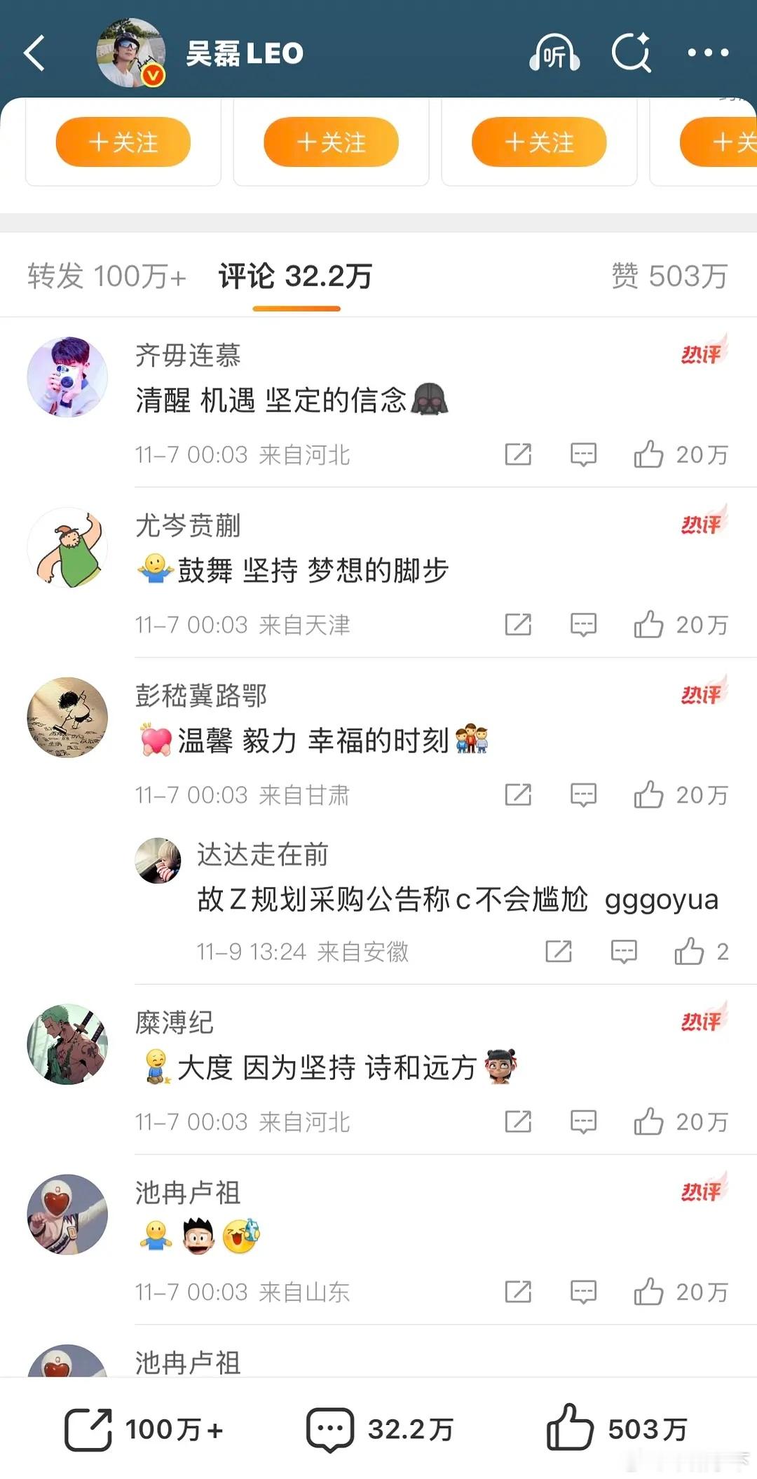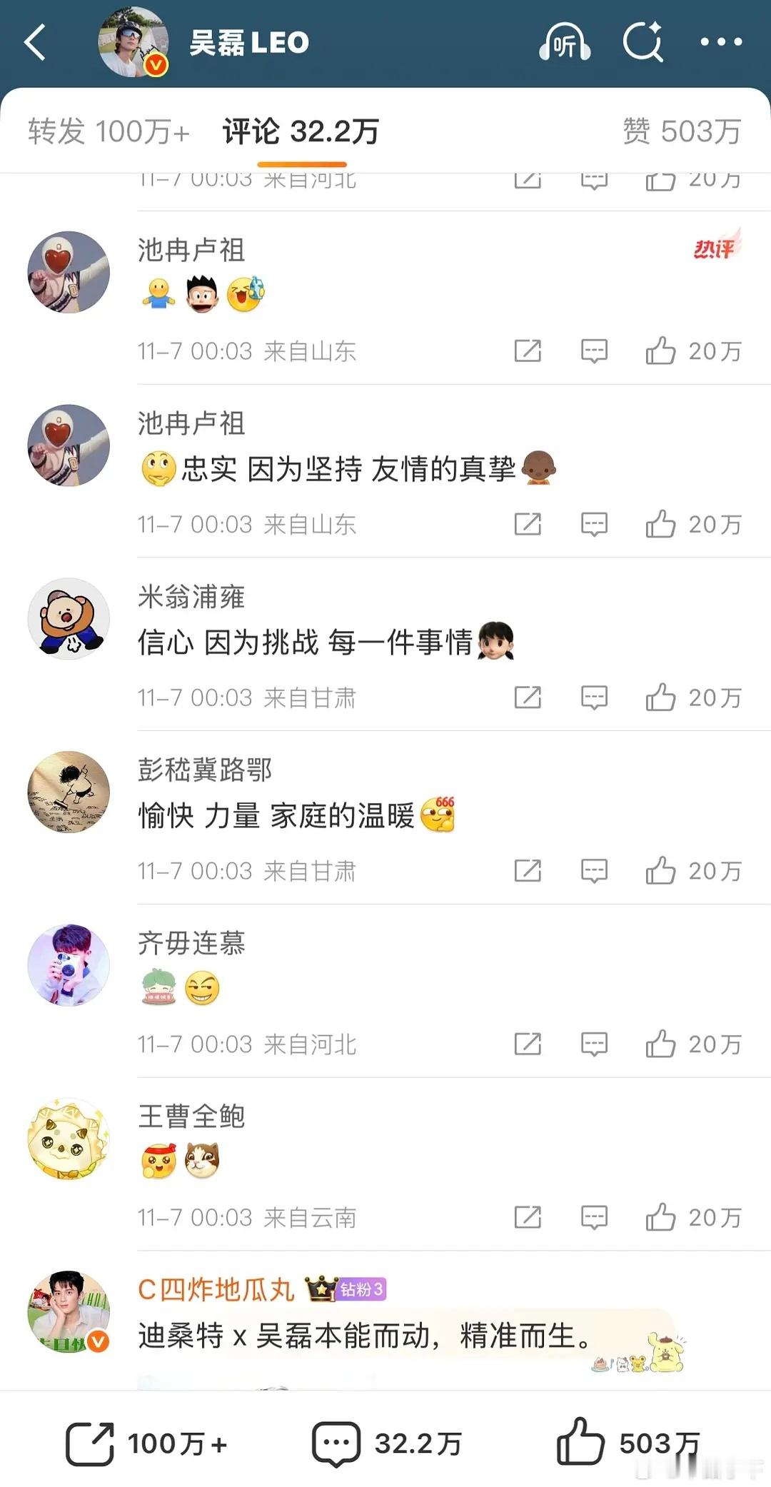 说的对,我不能针对星光墙,难道磊磊别的地方就不水了吗微博次次百万赞岂是一个小小星光墙仨瓜俩枣能比的 吴磊星光值暴涨