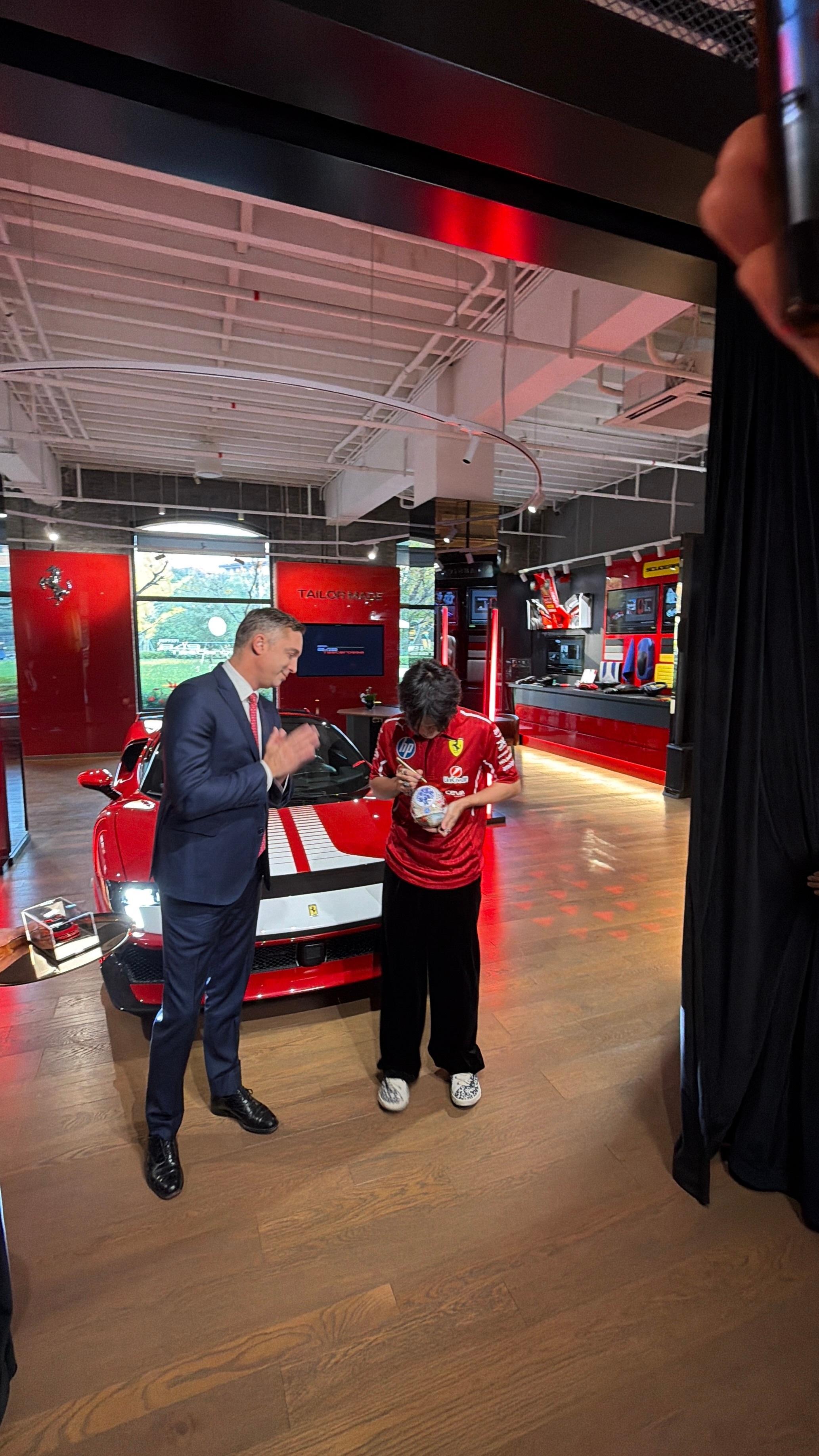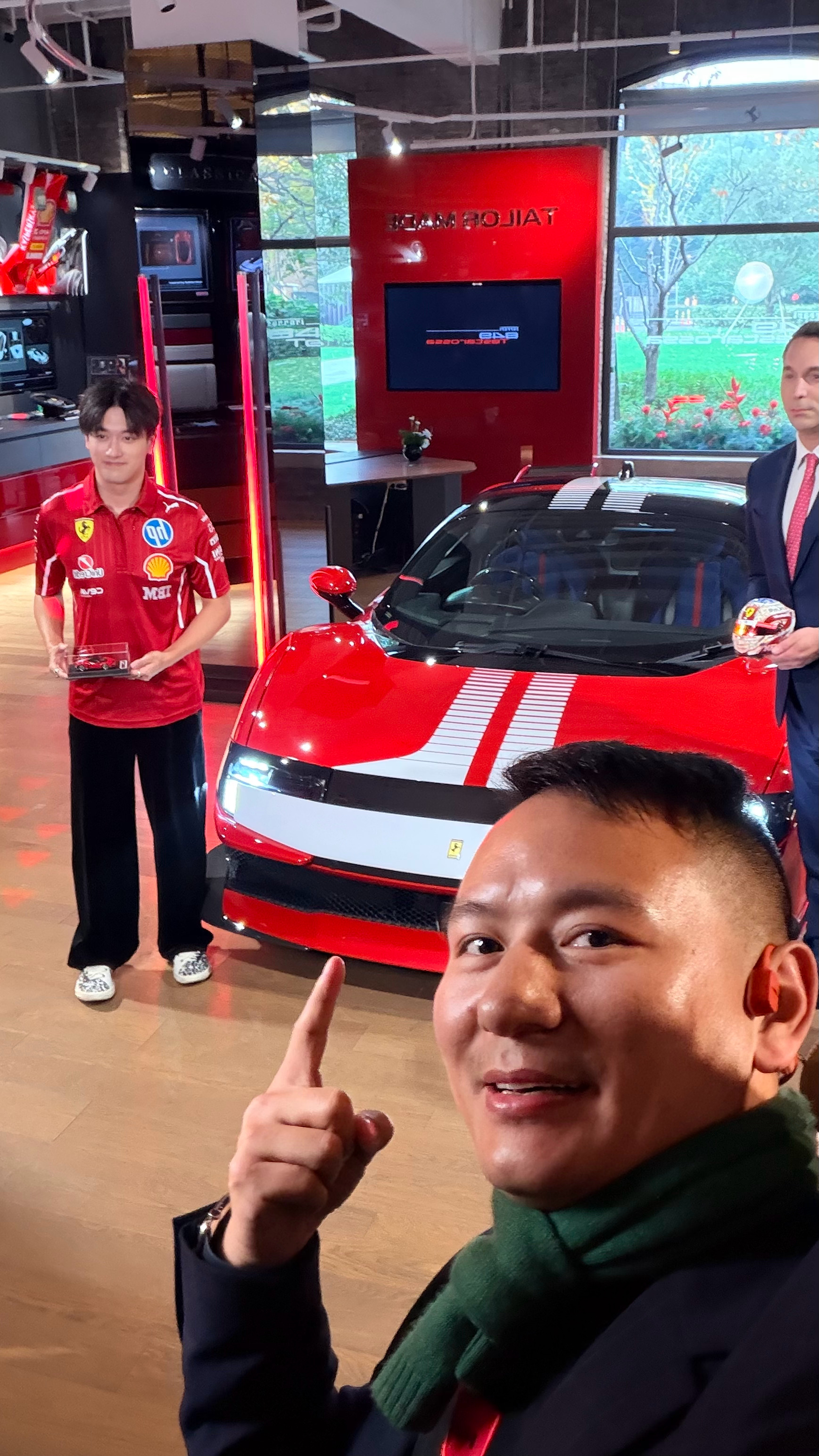 我承认我的脸比周冠宇 要大…法拉利大中华区总裁 杨跃思 博士(Dr. Jan Hendrik Voss) 和周冠宇揭幕法拉利849 Testarossa。上海F1法拉利 上海
