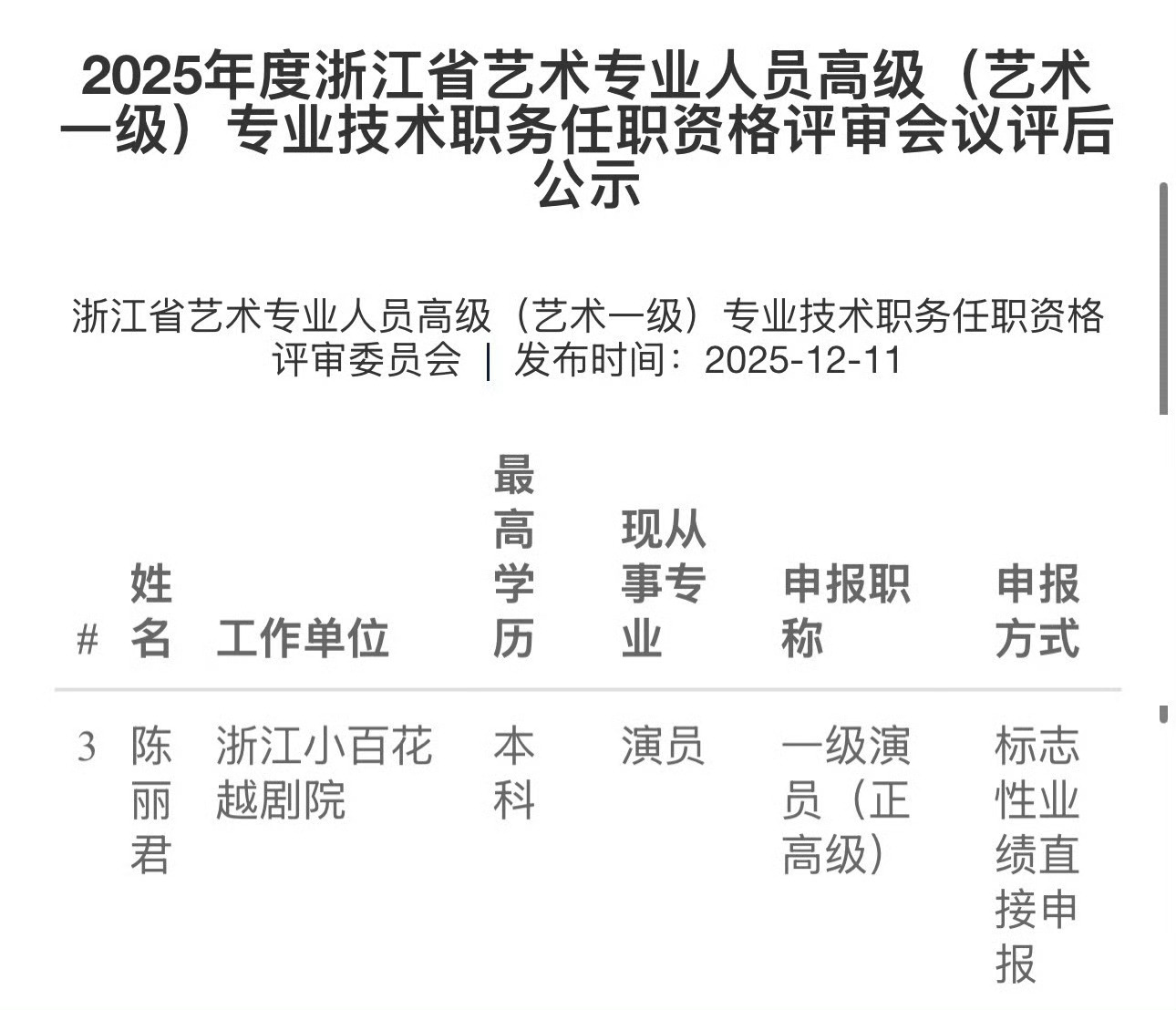 陈丽君 今晚时尚芭莎艺术大赏造型来啦一级演员资格申报也正式通过并公示了,90后就