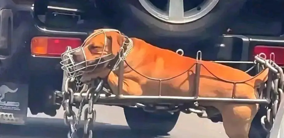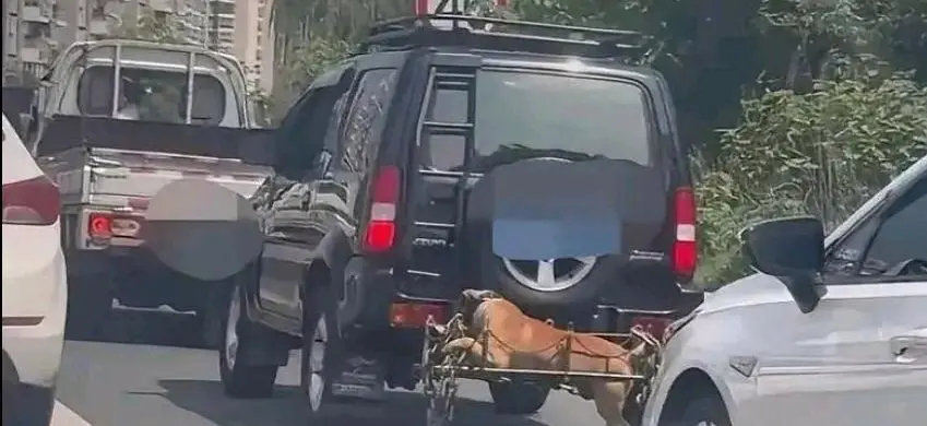 网友:今天回家的路上,看见一辆越野车后好像带着一只狗,这么热的天就直接绑在车后,也不知道主人是不是被逼无奈才选择这么做的,不然也不会想到这么个办法都要带上它,你们觉着呢!