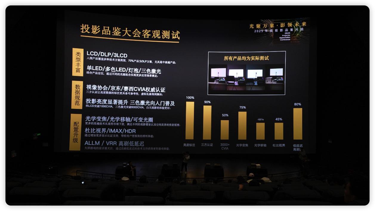 昨天去参加了“2025 年度投影品鉴大会”,本次活动由中国电子视像行业协会投影显示产业分会指导、瑞物评测室主办,汇聚行业权威专家、媒体达人与资深用户,以 “客观测试 + 主观评价” 选出 10 款不同价位推荐产品。CVIA亮度标准的落地彻底解决参数虚标痛点,AI 智能技术全面普及,自动对焦、梯形校正等功能让新手秒上手。从千元 LCD 投影到超万元旗舰机型,五大价位全覆盖:大眼橙 C3 Ultra、Vidda M2 Pro、坚果 N5 Pro、极米 RS20 Ultra Max 等产品凭借均衡实力脱颖而出,兼顾实用与沉浸体验。此次活动不仅展现了激光显示、高分辨率等前沿技术突破,更通过影院级沉浸式体验,让 “大屏自由” 触手可及。瑞物评测室持续搭建品牌与消费者的信任桥梁,推动行业规范化发展,未来投影行业将以更多技术创新点亮多元生活场景!